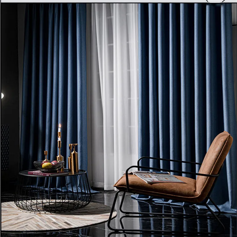 Темно-синие затемняющие шторы для гостиной, современные оконные што...