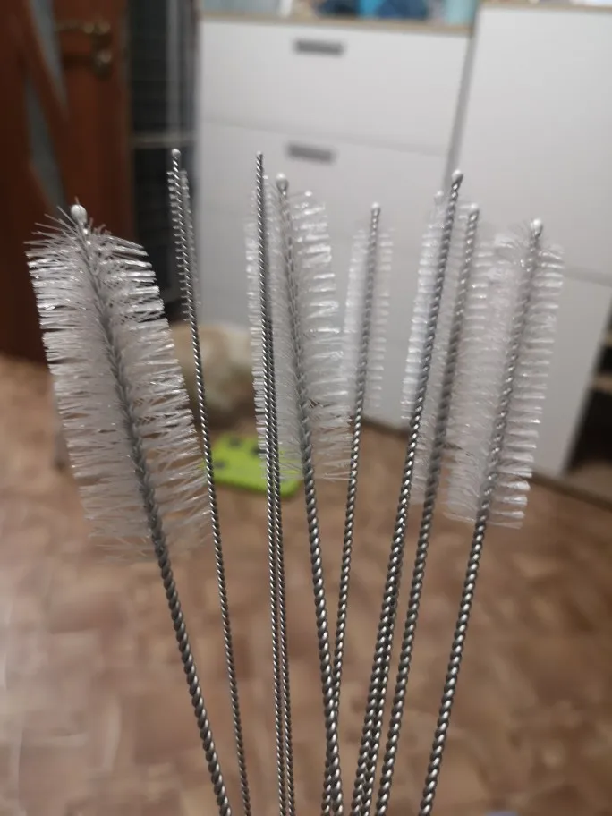Изготовлен из нержавеющей стали и нейлоновой щетиной, безопасен для мытья посуды и питья соломинки. Хорошо изготовленные нейлоновые щетинки также не легко выщипывать.