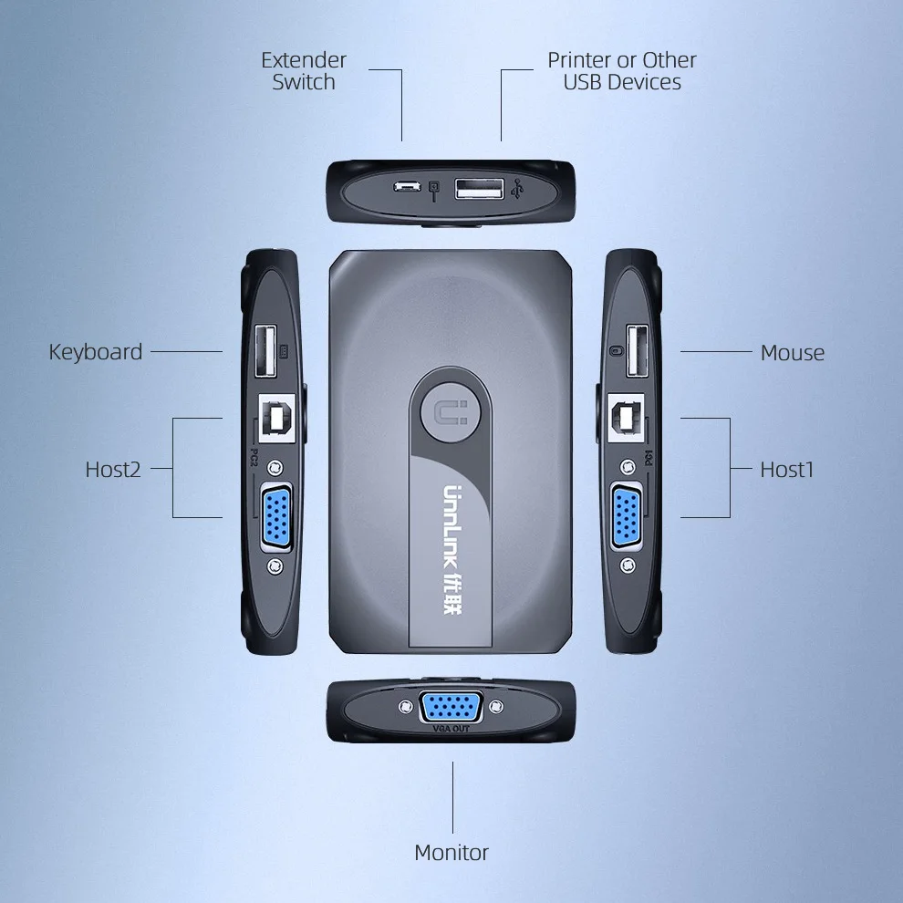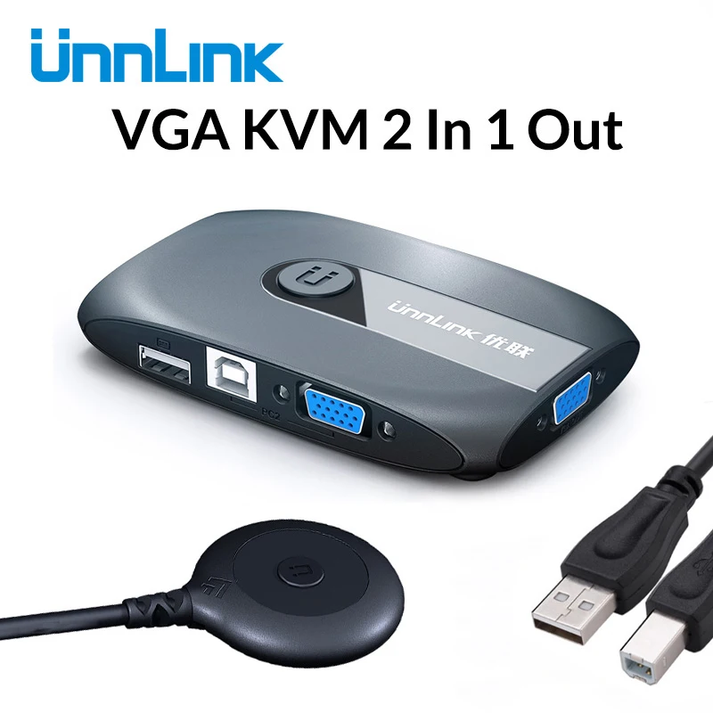 Квм-переключатель Unnlink 2X1 VGA, 1080P, с расширителем, совместное использование 2 компьютеров и ноутбуков, 1 монитор, 3 USB, мыши, клавиатуры, принтера Udisk