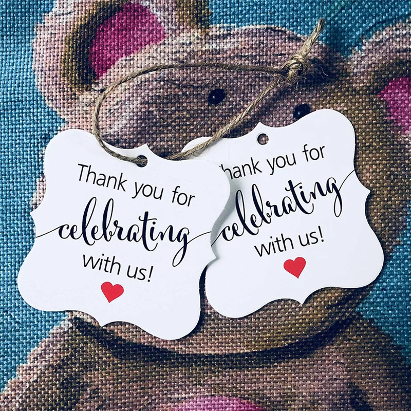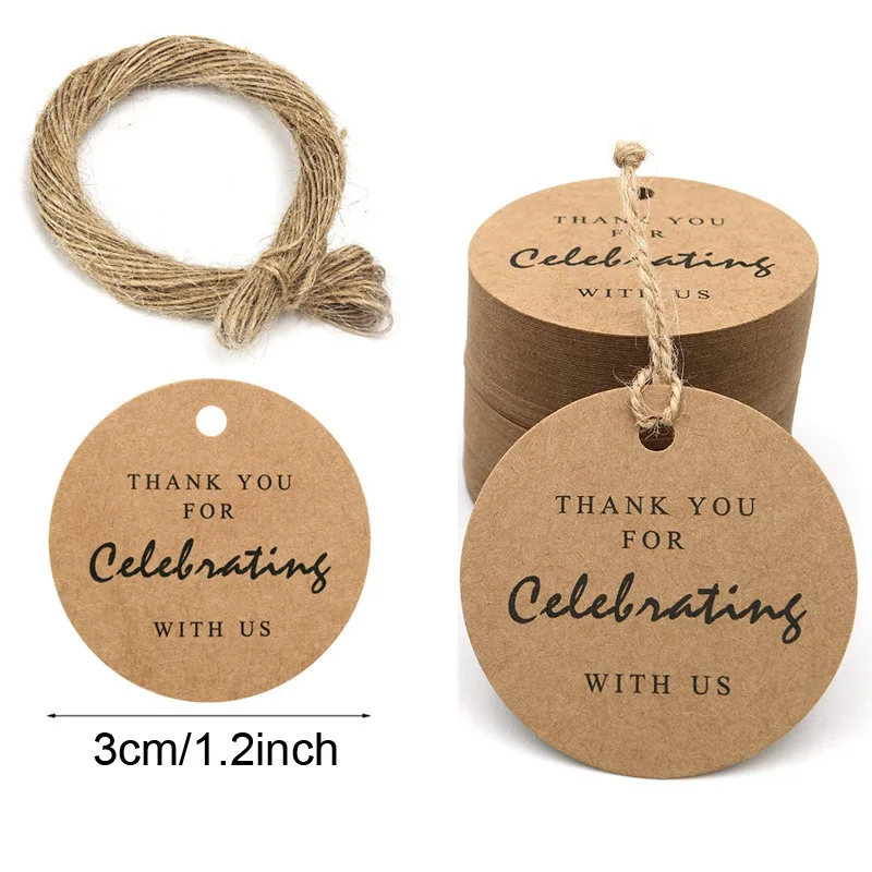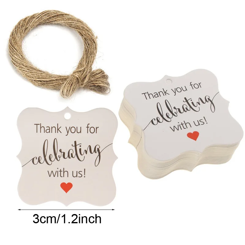 Бирки в подарок, 100 шт., спасибо за то, что отметили нас, дизайн, белая бирка из крафт-бумаги со шнурками, товары для свадьбы, дня рождения, рождевечерние