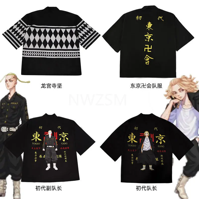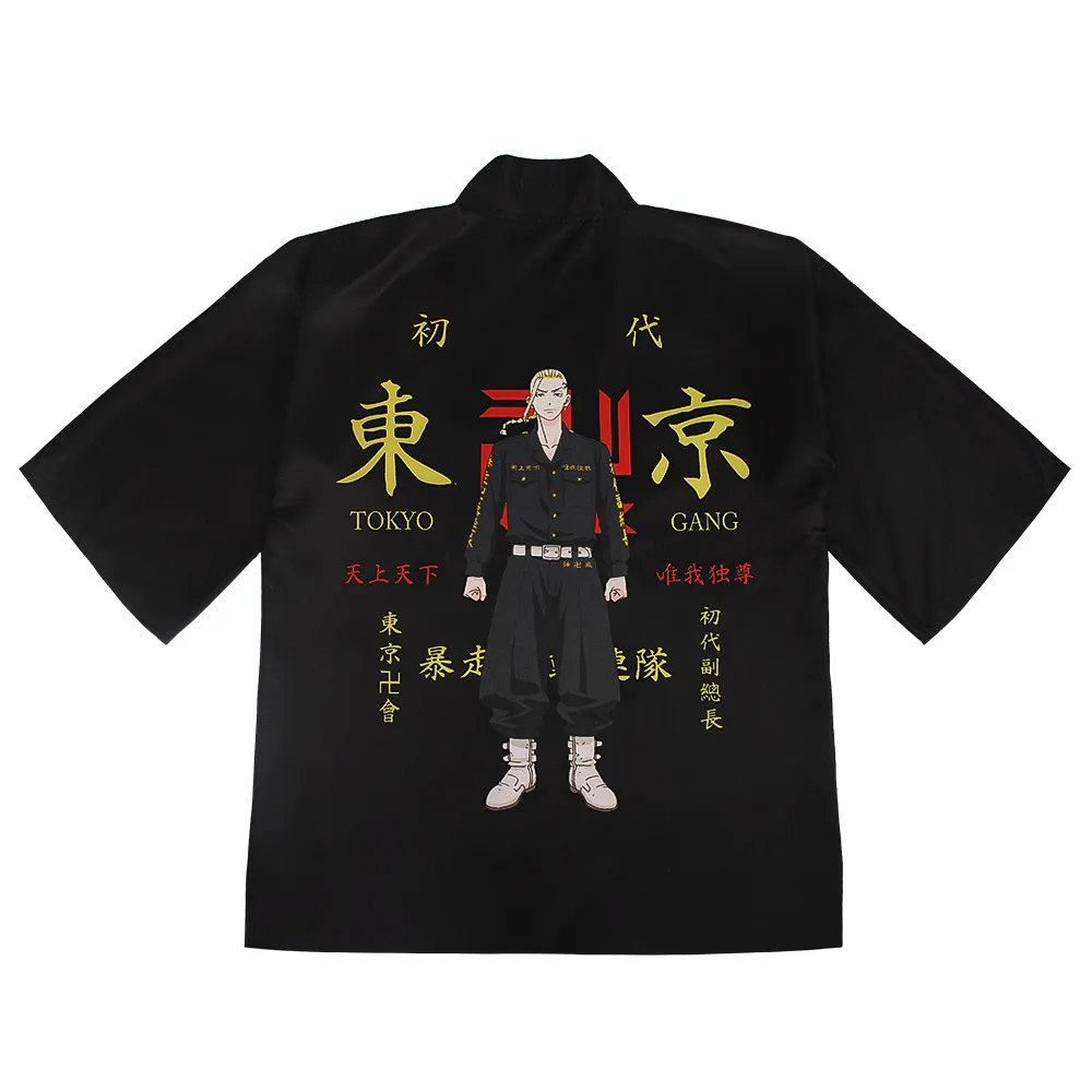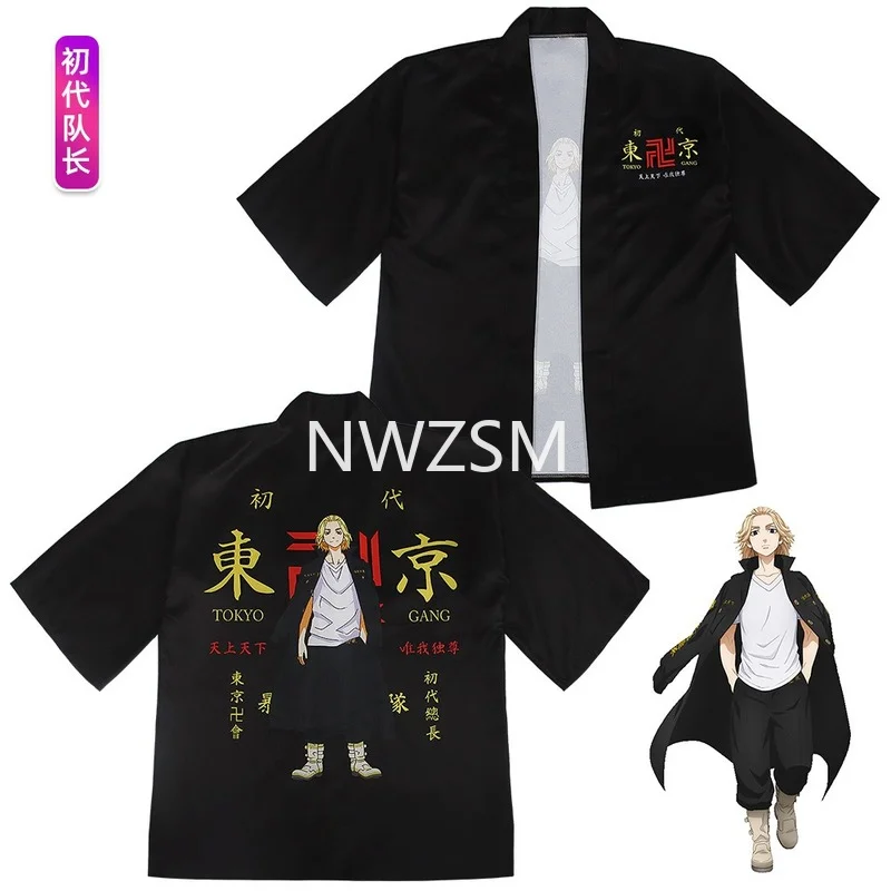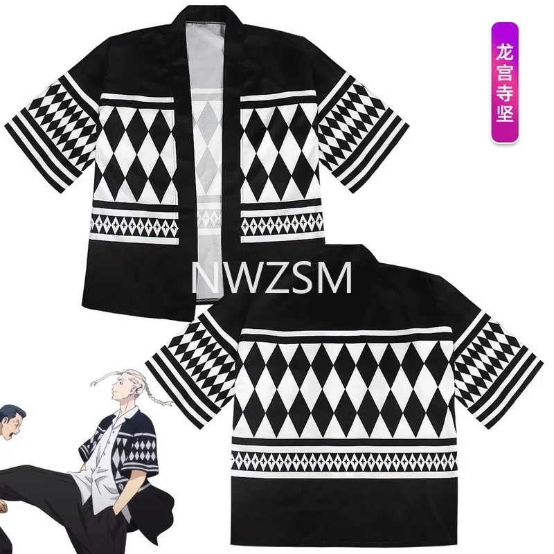 Кимоно мужское с коротким рукавом, топ с аниме принтом Токийский рептилии, черный белый топ для косплея, ханагаки, эмичи Кен, рягуджи, хаори, лето