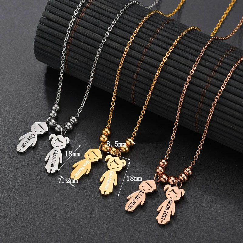 Индивидуальное ожерелье с именем семьи на заказ, подвеска из нержавеющей стали с гравировкой для мальчиков, девочек и детей, женский, детский чокер с бусинами, ювелирные изделия для мам Подарок