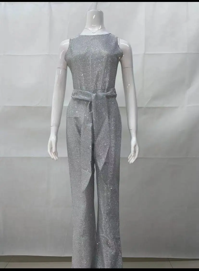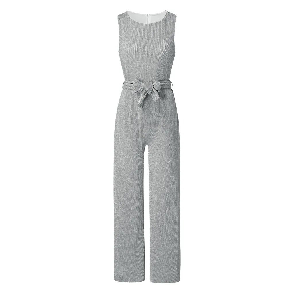 Женский вечерний комбинезон без рукавов, серебристый комбинезон в г...