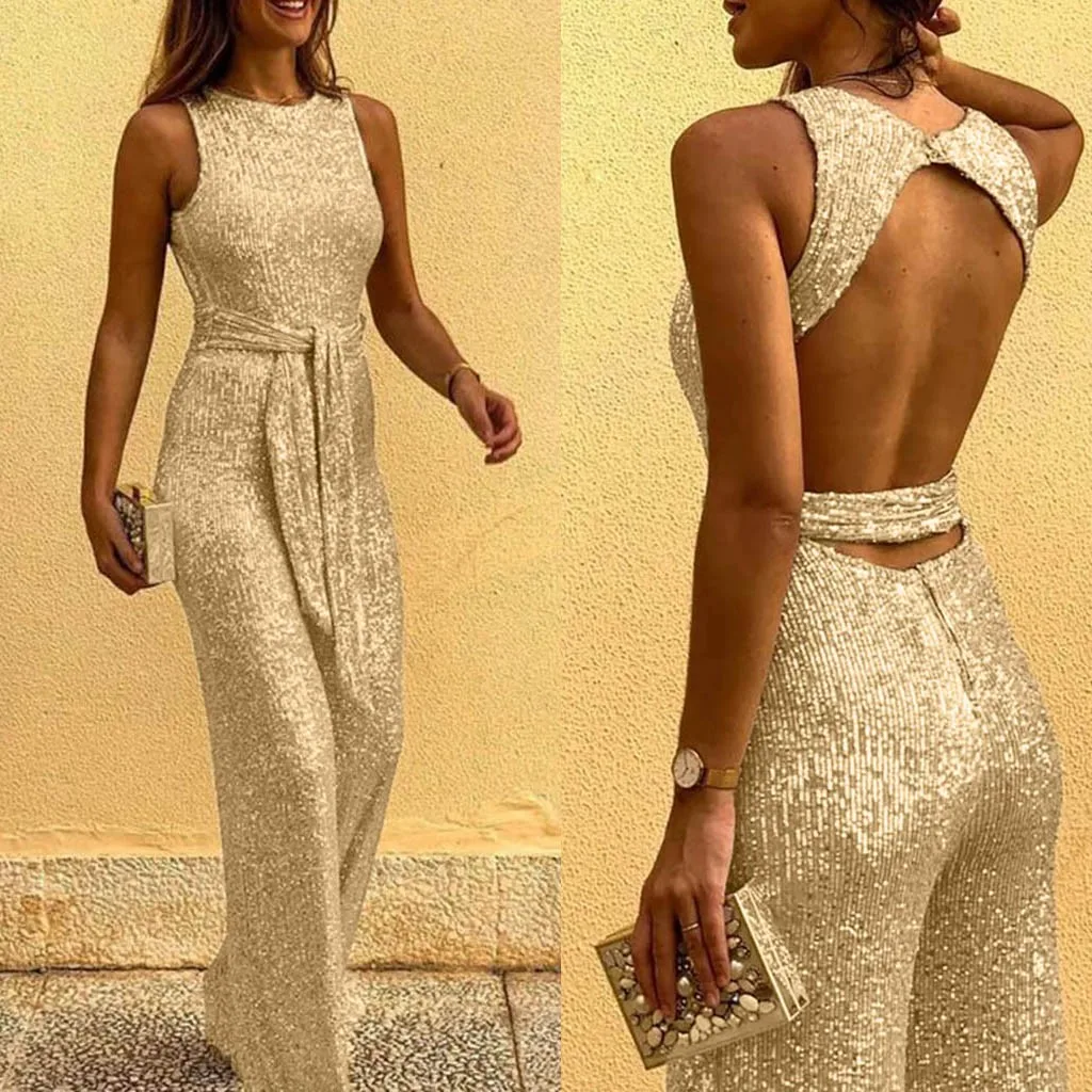 Женский комбинезон без рукавов, с блестками и открытой спиной