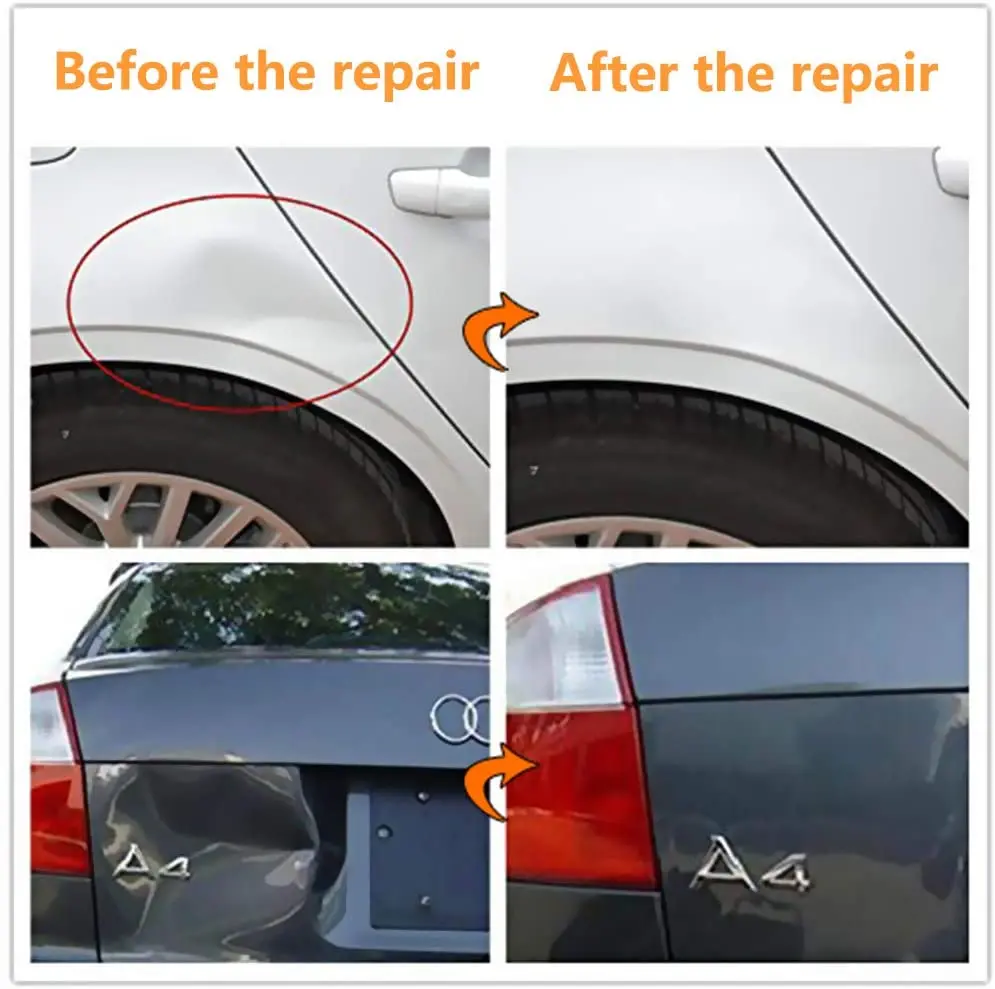 Все вмятины удалены! Этот набор имеет все необходимые инструменты, длинный пуллер помогает восстановить большие вмятины, а мостовой съемник удаляет маленькие. Вы можете отремонтировать различные размеры автомобильных вмятин самостоятельно с помощью этого набора инструментов для удаления вмятин. Получите один набор для вашего автомобиля, и вам не нужно ходить в автомобильный магазин!
