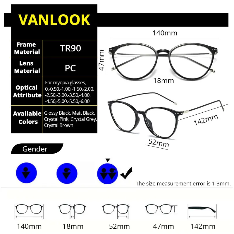 1. Модный стиль,2. Очки для близорукости со степенью3. TR90 рама + TR90, светильник, податливый4. Заводская цена без наценки5. Мужские и женские очки для близорукости6. Полная оправа очков + линзы для работы за компьютером, прозрачные линзы