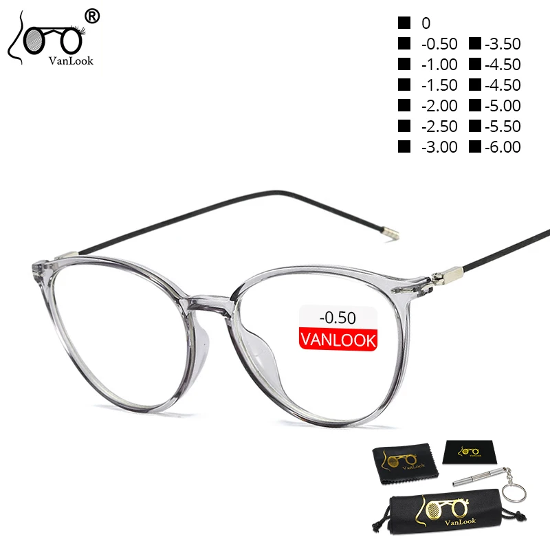 Очки для близорукости женские прозрачные TR90 круглые оправы для очков мужские Оптические Очки стильные очки с диоптриями 0-0,5-1,0-1,5-6,0