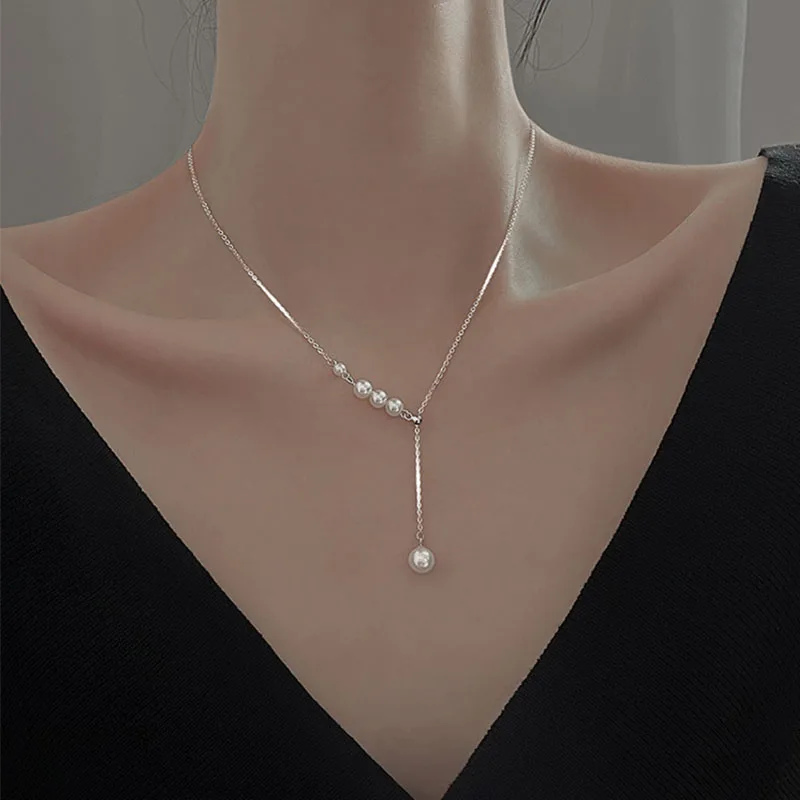 VENTFILLE, регулируемое ожерелье из стерлингового серебра 925 пробы с жемчужной кисточкой для женщин, простой французский светильник, роскошная цепочка для ключицы, подарок