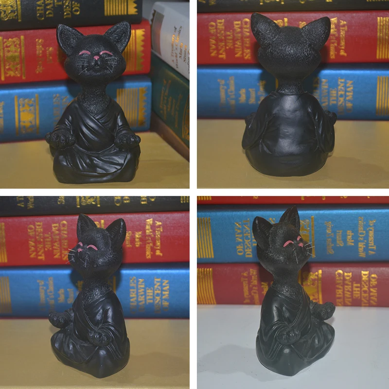 Чудесная черная статуэтка Будды, кошки, статуэтка для медитации, йо...