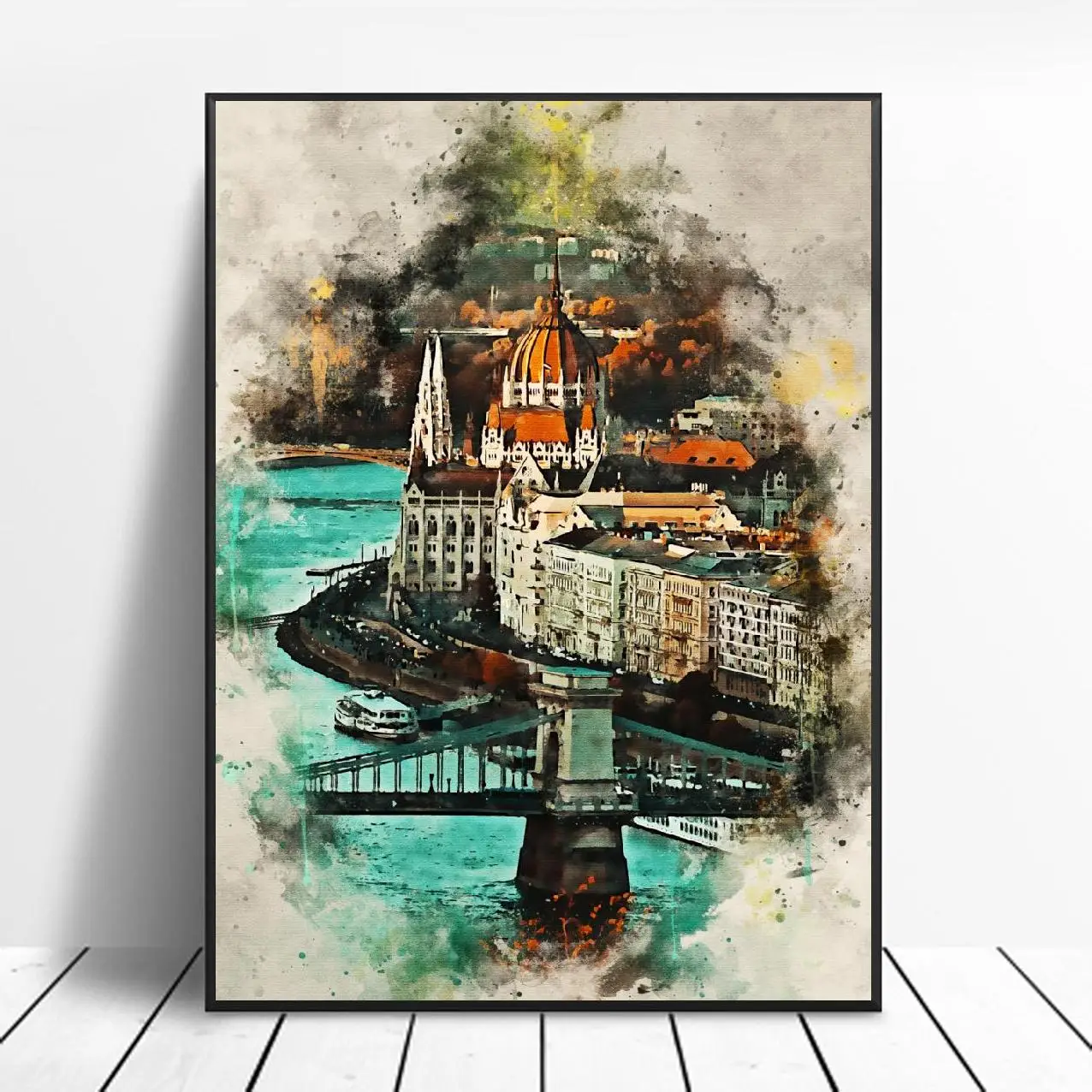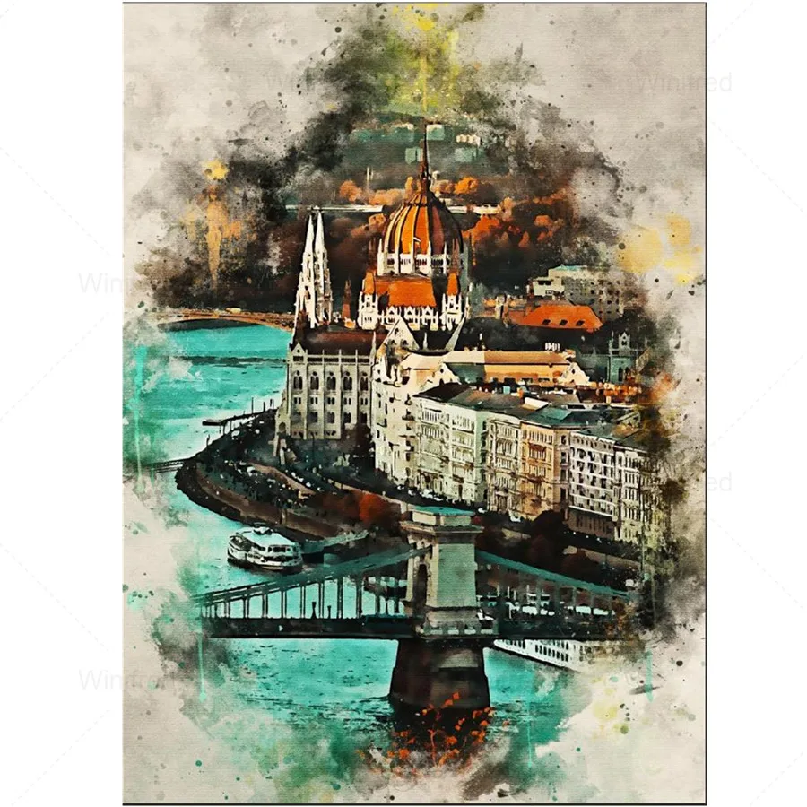 Будапешт акварель винтажная Картина на холсте здания настенные худо...