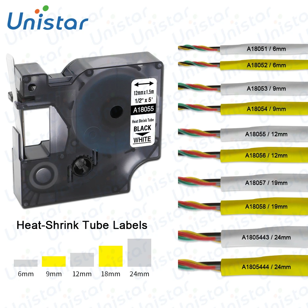 Термоусадочные трубчатые этикетки Unistar 18055 12 мм, изоляционные Кабельные марки, совместимые с лента Dymo D-Tape Rhino