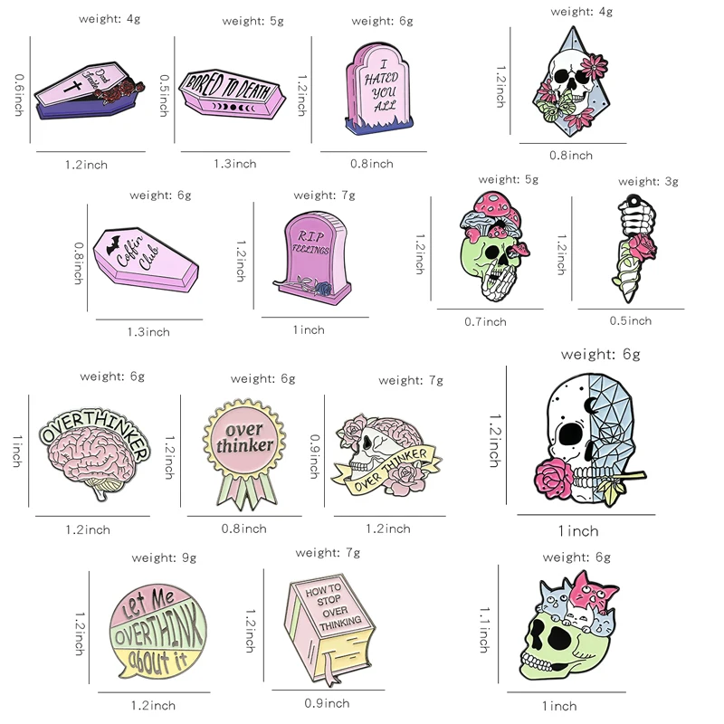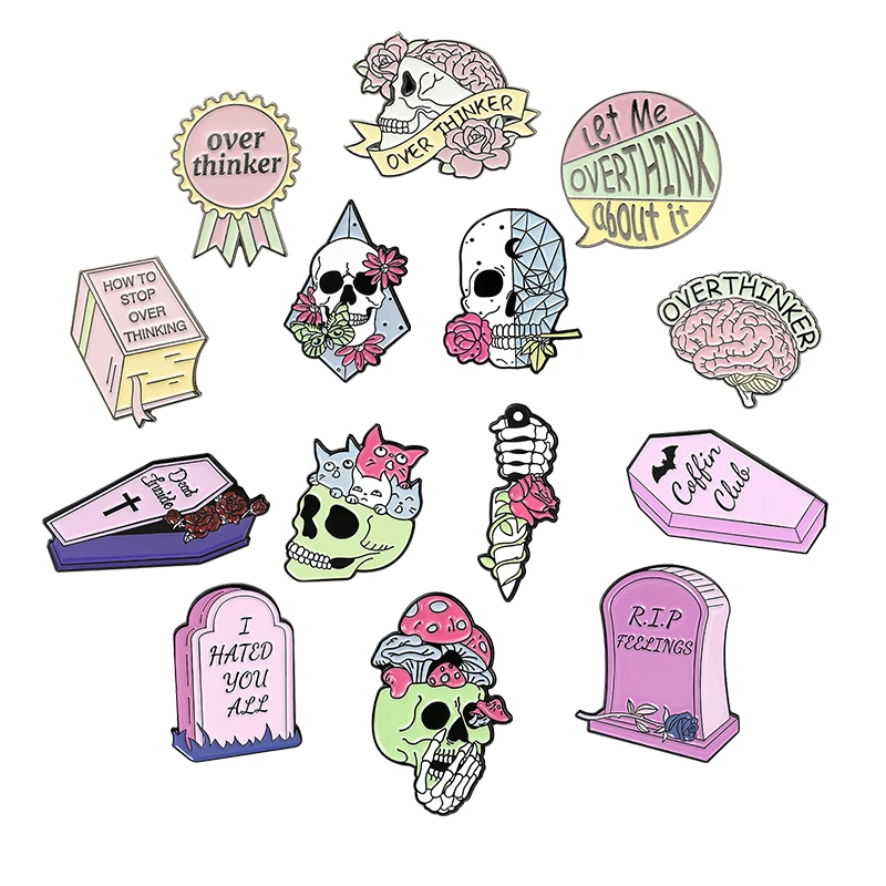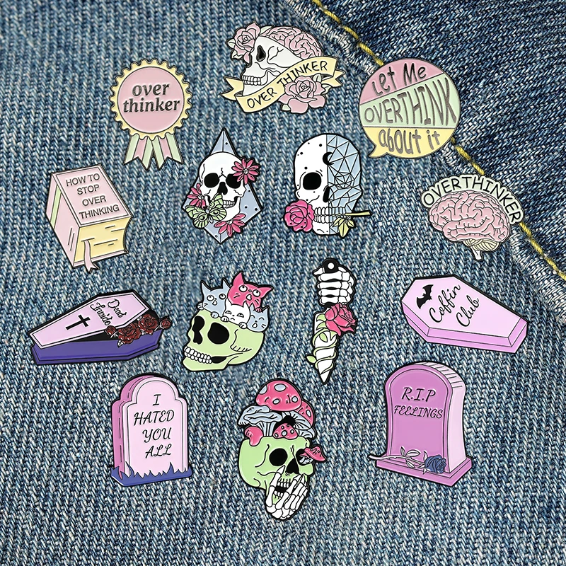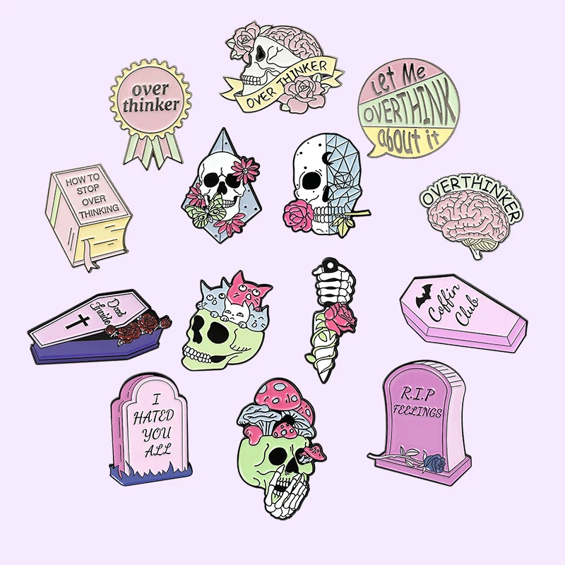Эмалированные булавки розового цвета, эмалированные булавки Overthinker, каркас для одежды, булавка для лацкана, мультяшный значок, ювелирный подарок для друзей, оптовая продажа