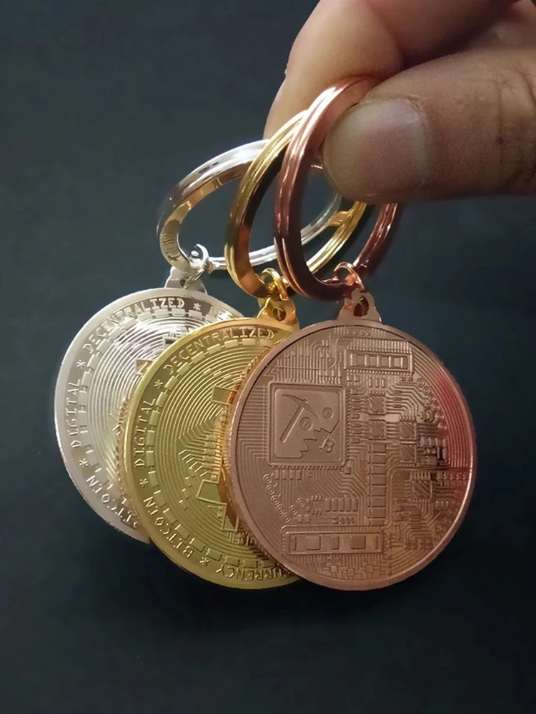 Оптовая продажа, позолоченная цепочка для ключей с монетами из биткоина, коллекционная Коллекционная Коллекция, подарок, имитация под старину, для домашнего декора