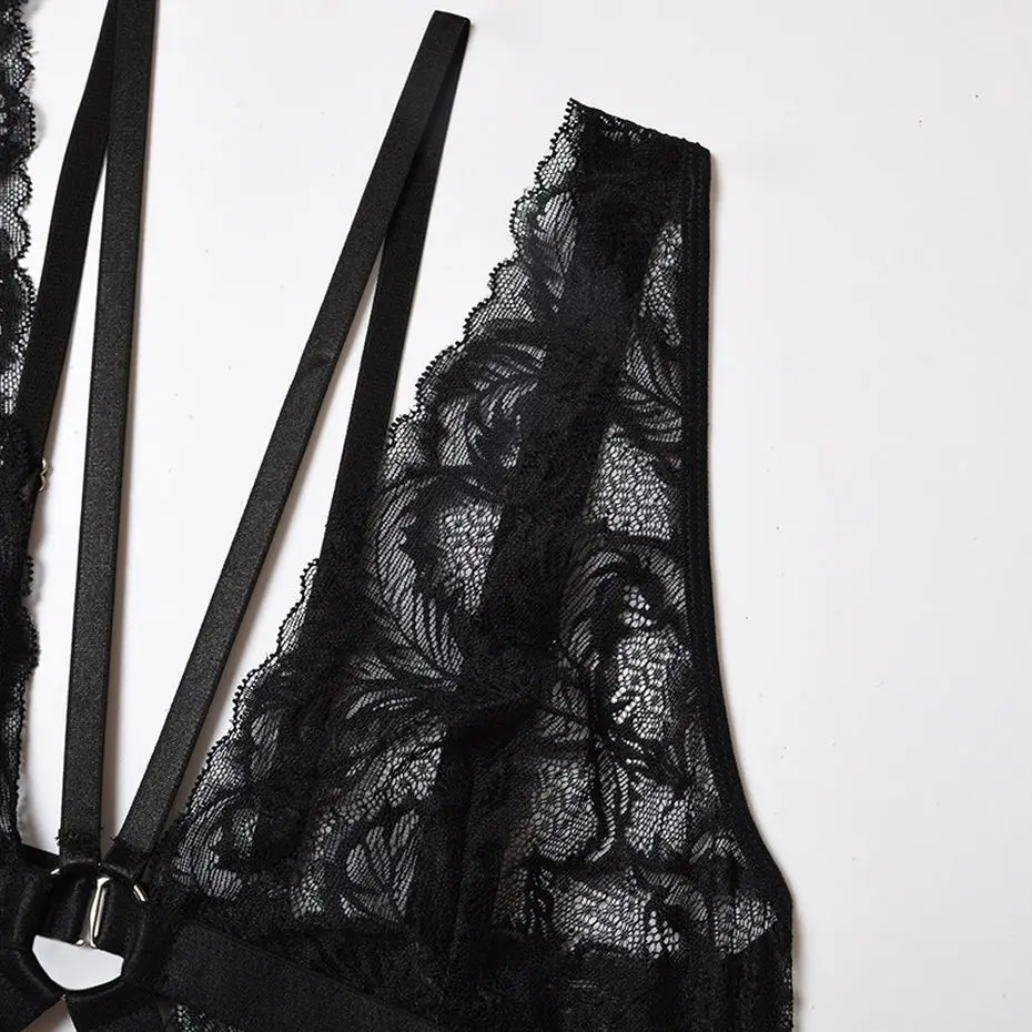 Сексуальное нижнее белье, кружевное женское нижнее белье, соблазнительный женский бюстгальтер с перекрестными лямками через шею, эротическое цельное боди, женское чувственное нижнее белье для женщин