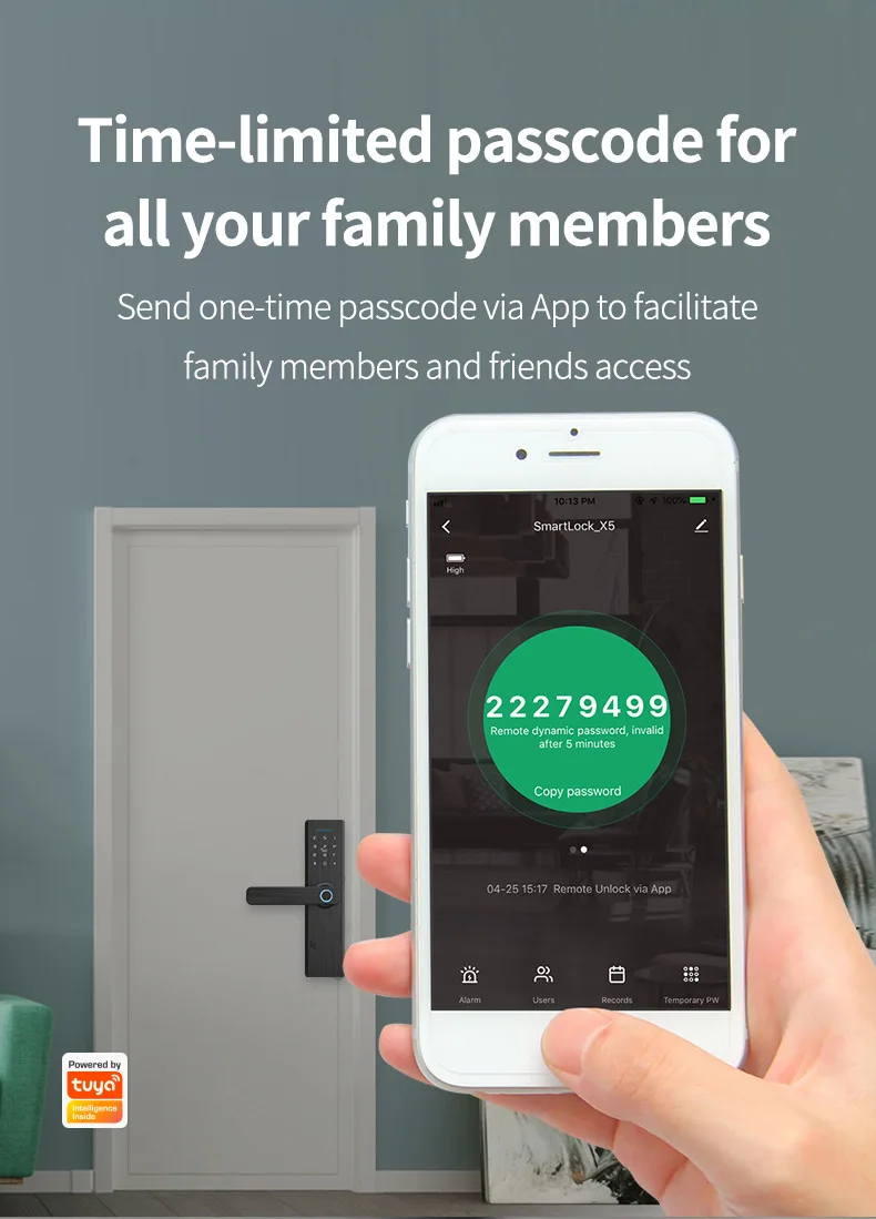Смарт-замок Tuya с Wi-Fi и сканером отпечатков пальцев