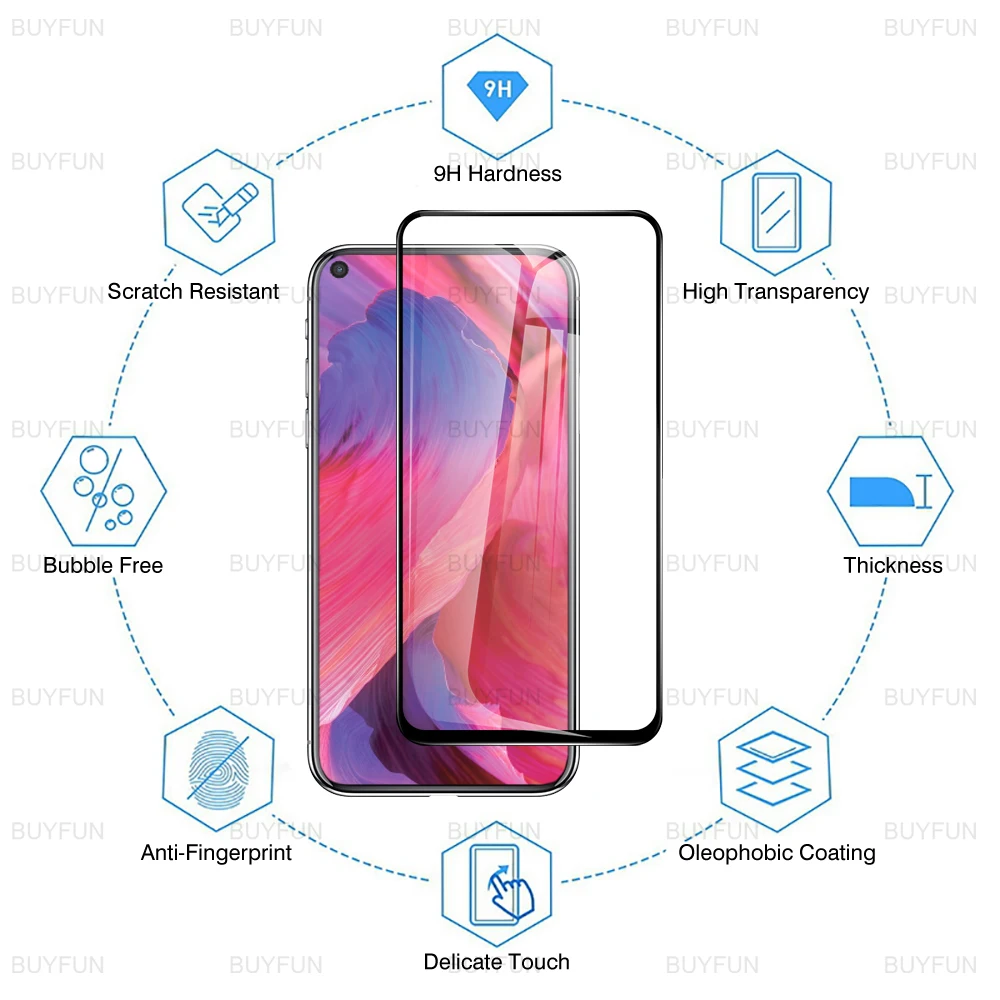 Для Oppo A54 A74 A94 5G закаленное стекло с черными краями для reamle gt neo c21 8pro для reno5 lite Полное покрытие Защитная стеклянная пленка для объектива