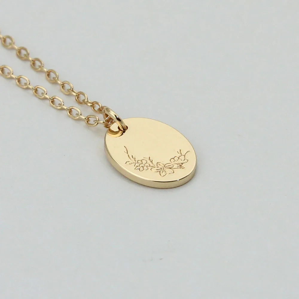 Оптовая продажа ювелирных изделий на заказ, ожерелье с гравировкой цветка вишни, овальное ожерелье с подвеской в виде цветка родов