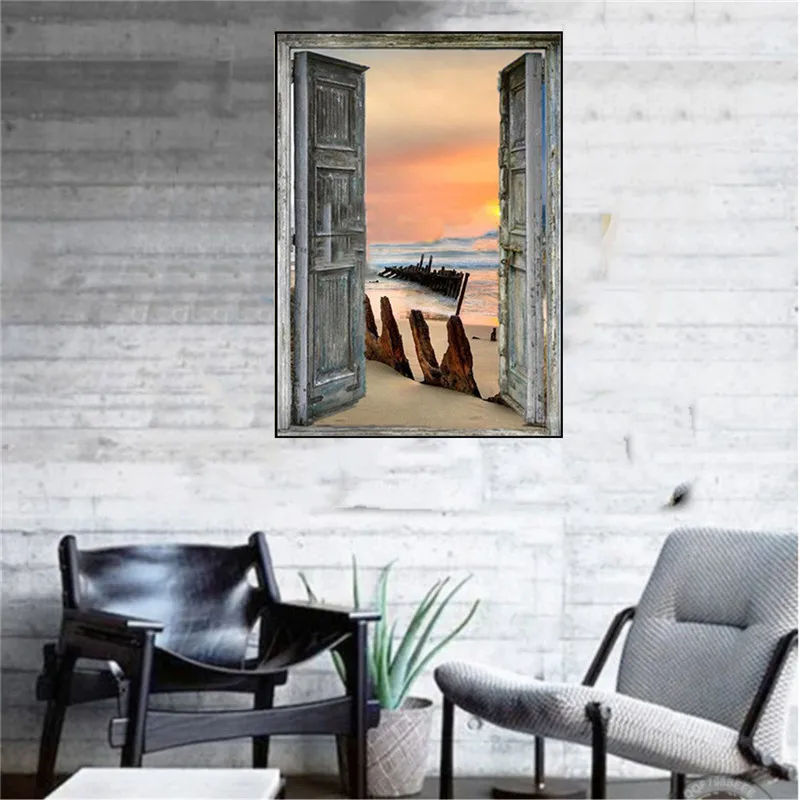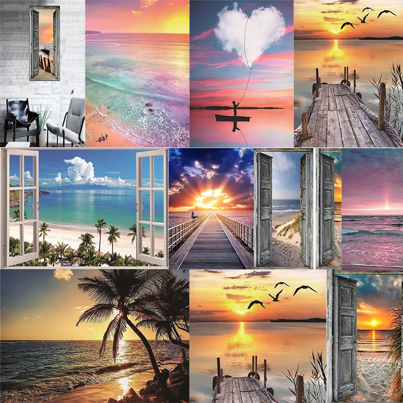Алмазная 5D картина сделай сам, полноразмерная вышивка квадратными стразами с изображением заката, двери, моста, кокосового дерева, морского берега, домашнее искусство