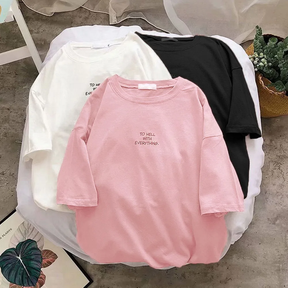Летняя женская футболка с коротким рукавом и круглым вырезом, Корейская версия новой модели, повседневные топы с милым мультяшным принтом и надписью