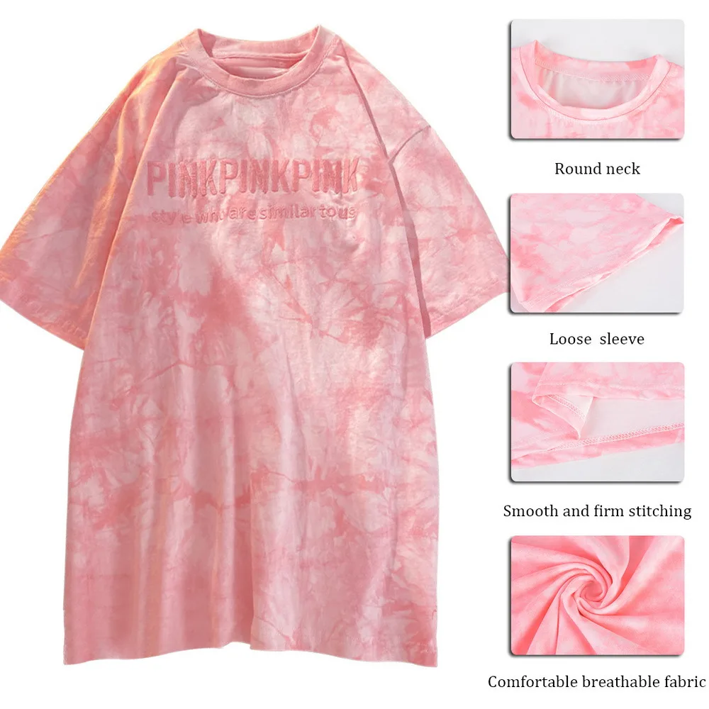 Летняя женская футболка с коротким рукавом и круглым вырезом, Корей...