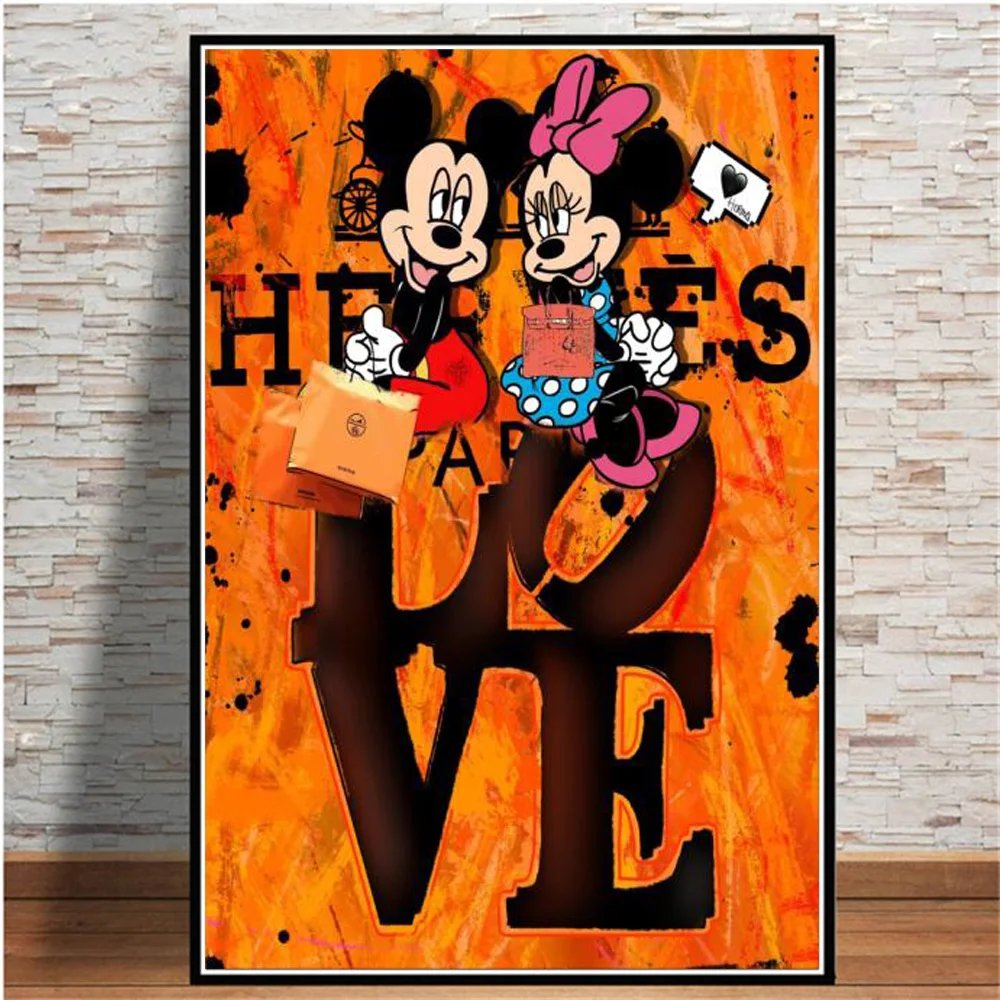 Граффити Disney Микки Маус и Дональд Дак холст картина стены искусс...