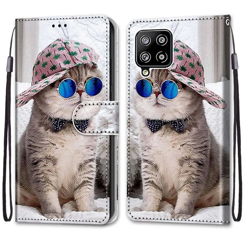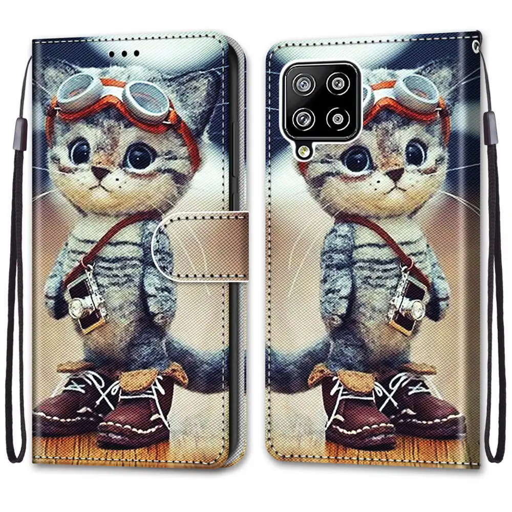 Раскрашенный кожаный флип-чехол для телефона Samsung Galaxy A02, A02S, A12, A32, A42, A52, A72, флип-чехол для Samsung Galaxy M02, M02S, кошелек, держатель для карт, подставка, чехол-книжка