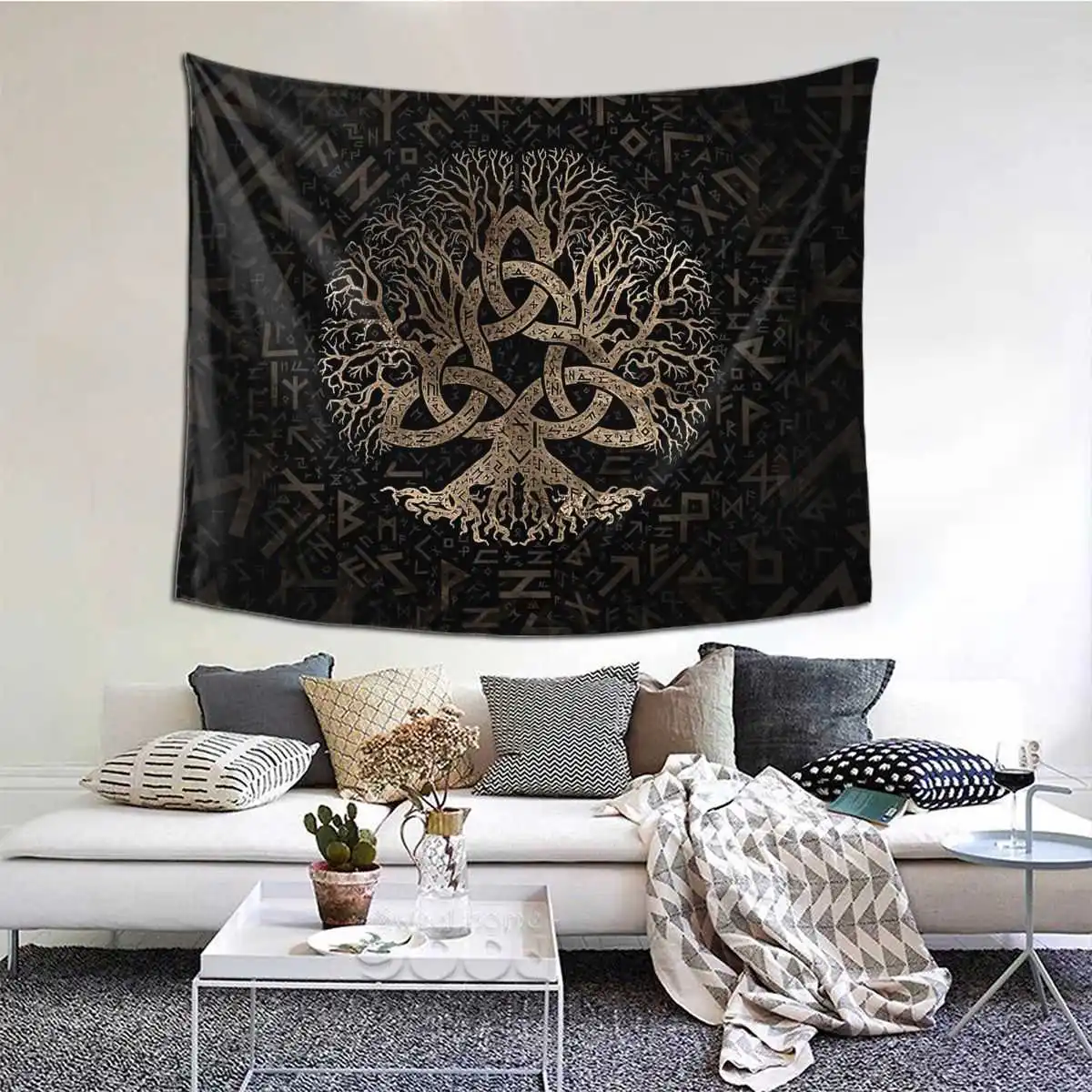 Древо жизни с трикверой на Futhark, гобелен викингов, Настенный декор, декор в стиле бохо, домашний декор, комнатный Декор