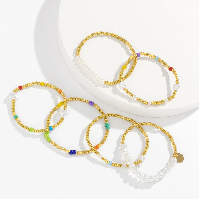 6 шт., браслеты с жемчугом в форме сердца icon star icon star icon star icon star icon star