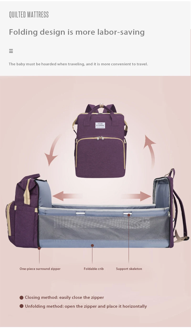 Новинка, многофункциональная сумка для подгузников для мам, детская складная кровать, одноцветная уличная Большая вместительная сумка для подгузников для женщин, рюкзак для беременных