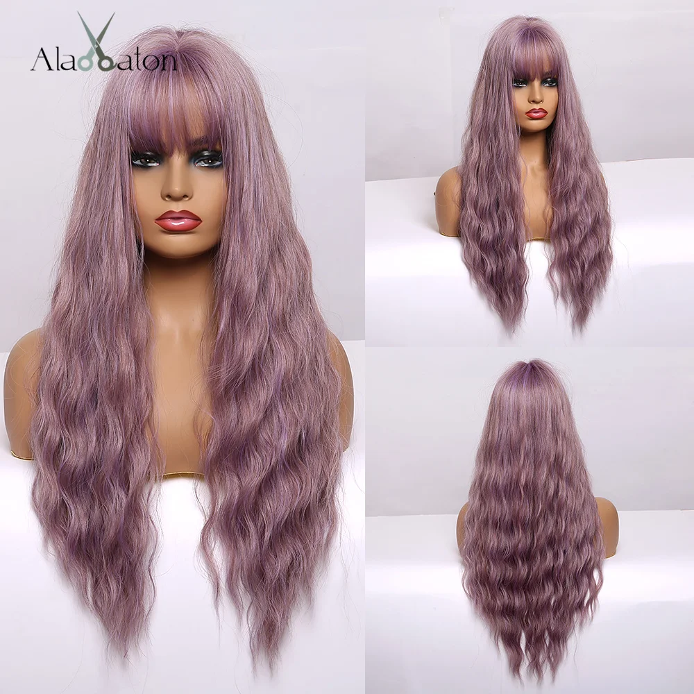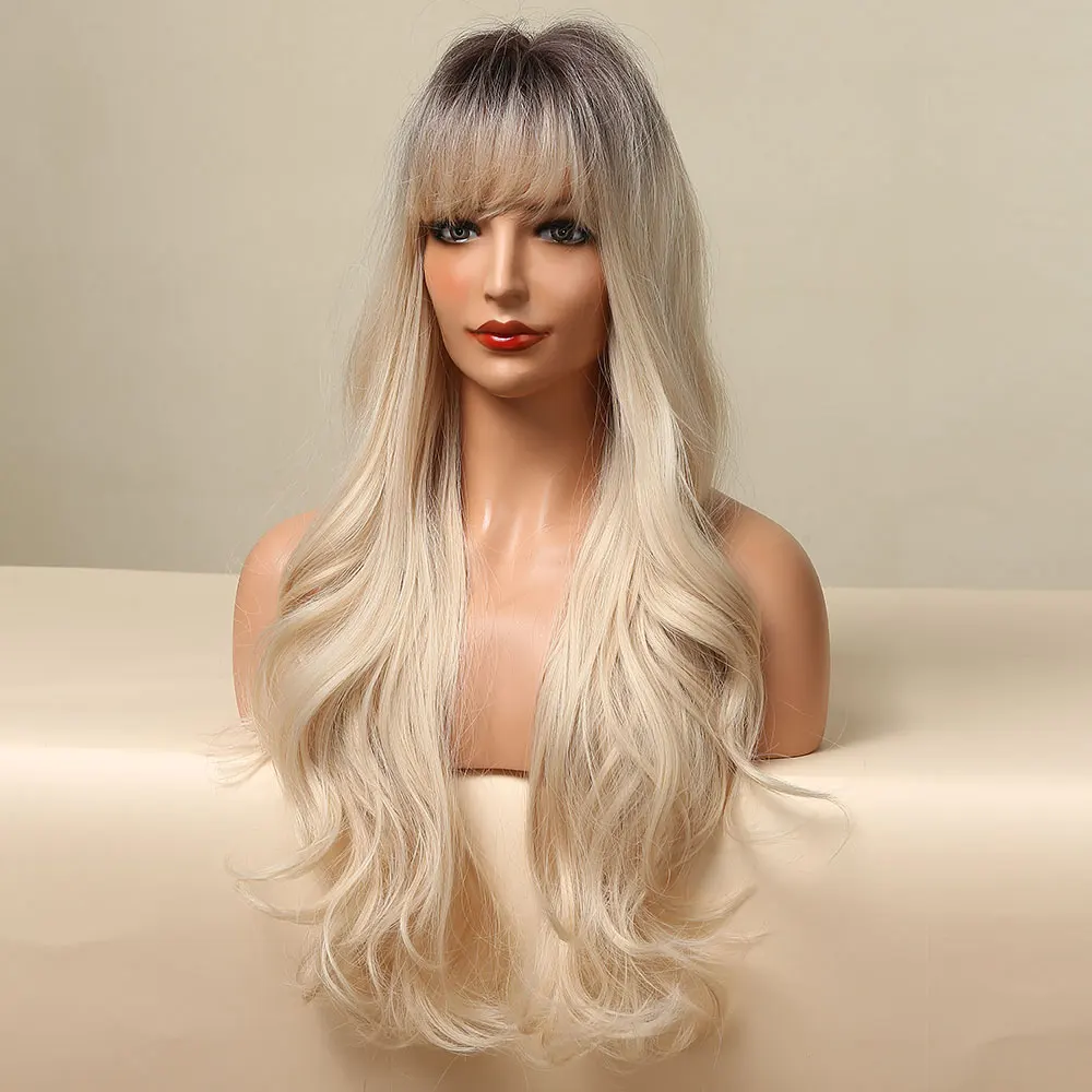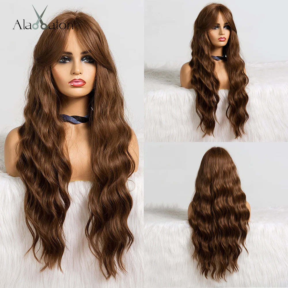 Парики ALAN EATON с Омбре черные, коричневые, светлые длинные волнистые волосы парики с челкой косплей повседневные синтетические парики для женщин термостойкие волокна