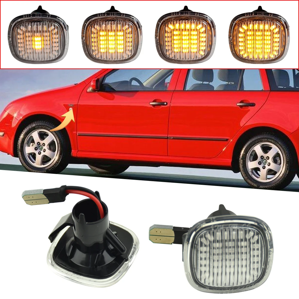 Динамический светодиодный боковой габаритный указатель поворота для Skoda Fabia, Octavia, Superb, Roomster, SEAT Cordoba, Ibiza, AUDI A3, A4, A8, 2 шт.