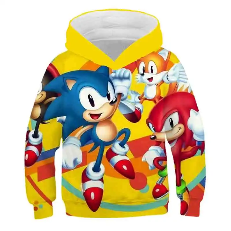 Детская одежда, худи Sonic, одежда для маленьких мальчиков, детские топы для девочек, пуловер, осенняя модная Толстовка с длинным рукавом и 3D мультяшным принтом