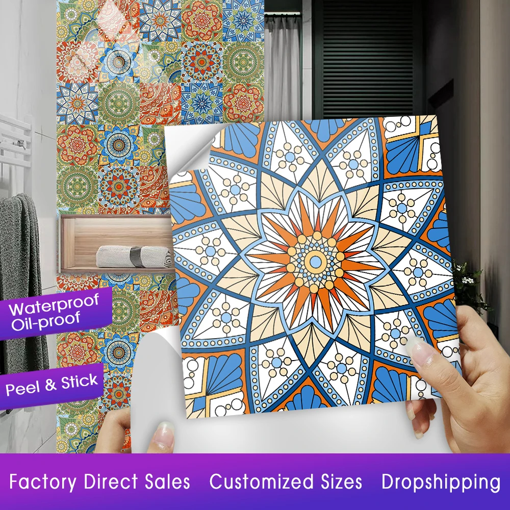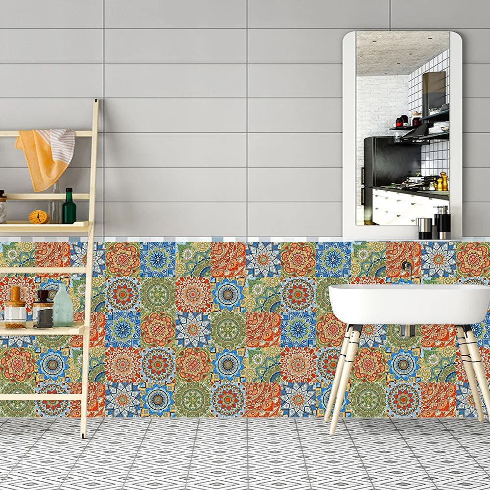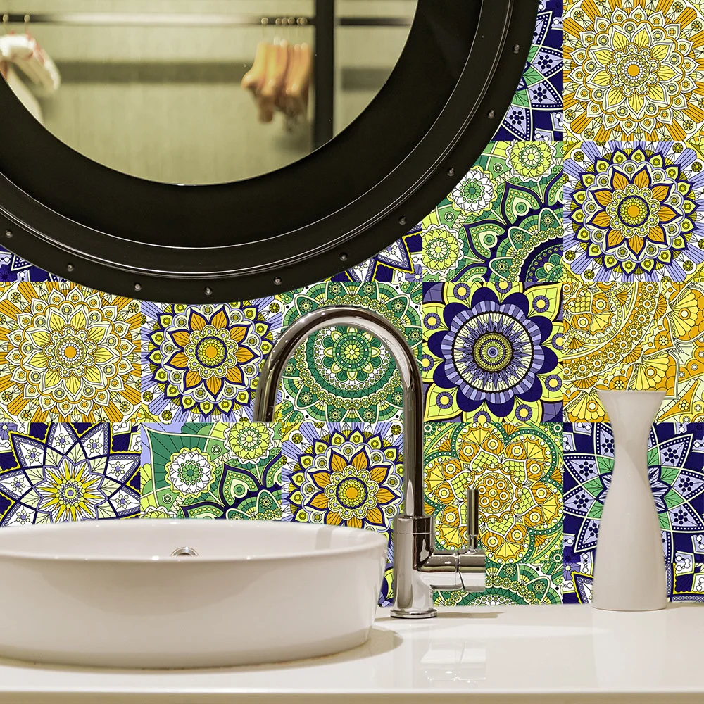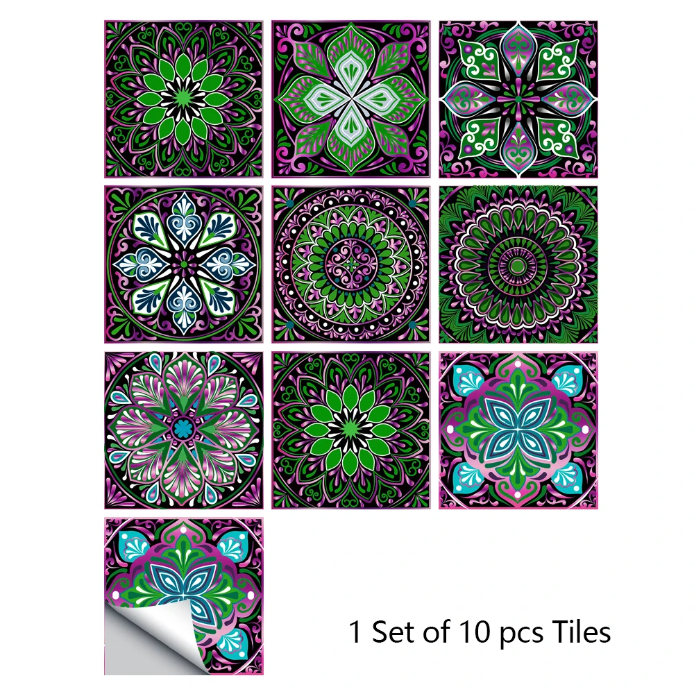 Style10pcs/set Mandala Style Crystal Hard Tiles Ceramics Wall Sticker