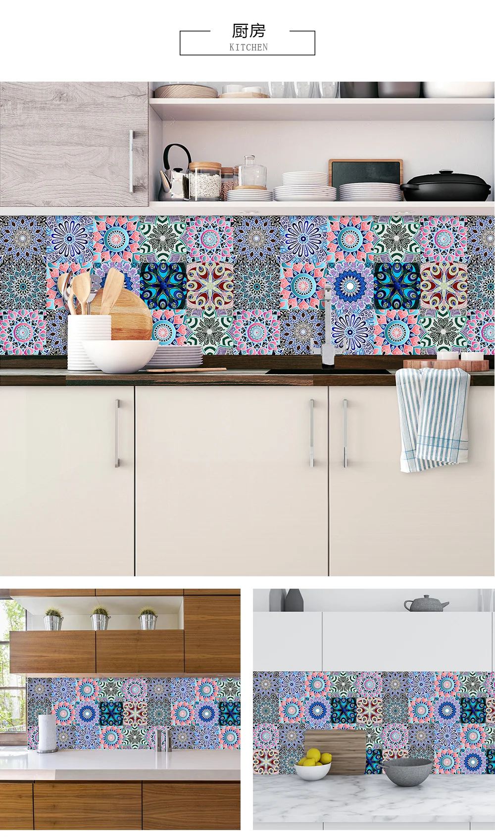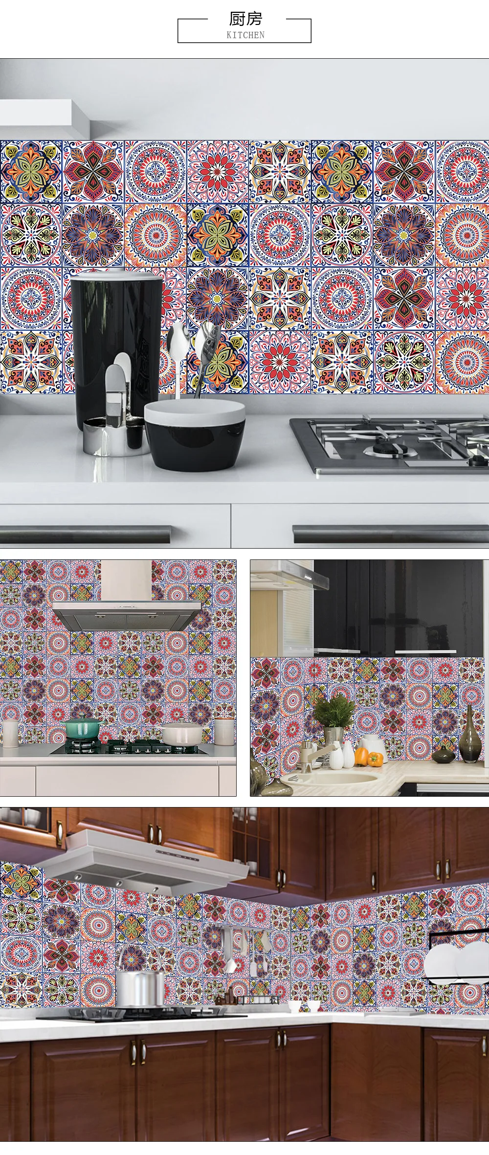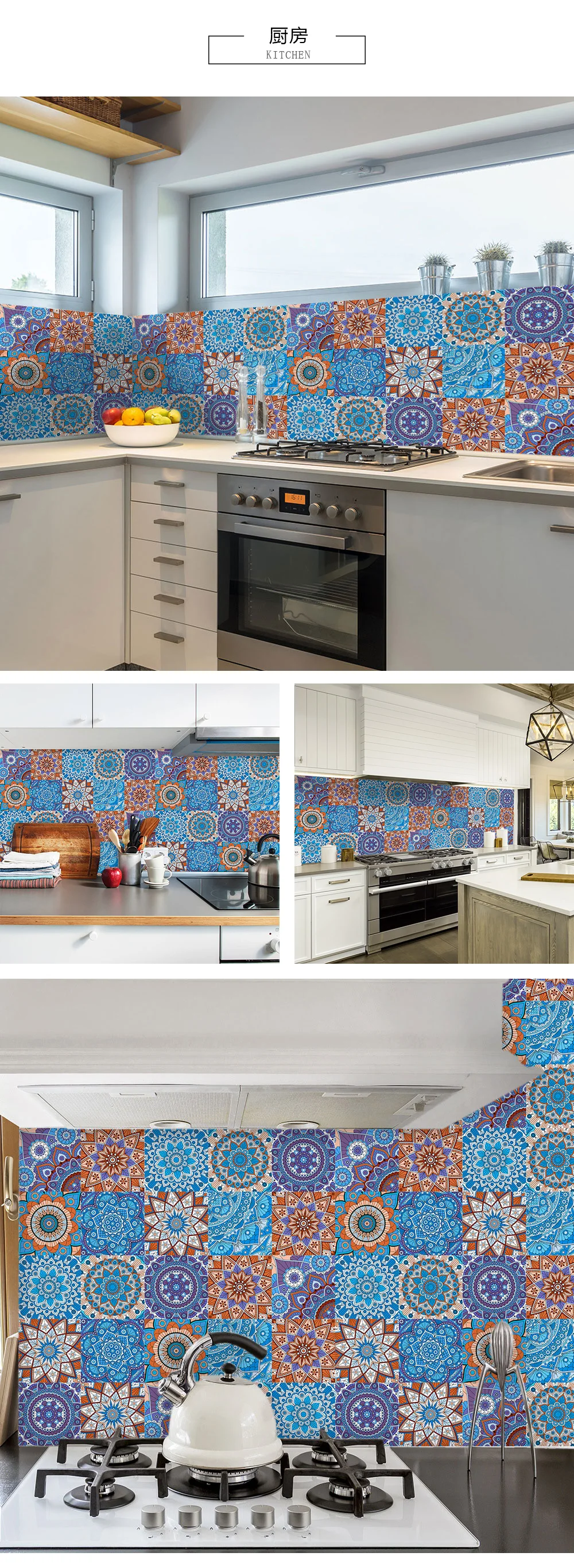 10 шт./компл. Мандала Стиль Кристалл твердая плитка керамика Наклейка на стену кухня шкаф домашний декор искусство росписи пилинг & Наклейка на стену
