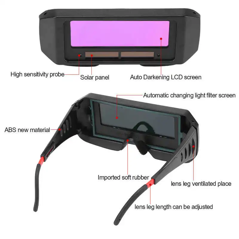 Эти солнечные самозатемняющиеся сварочные очки отличаются анти-ультрафиолетовым, инфракрасным излучением, антибликовым покрытием.Авто-затемняющий фильтр Автоматический переход от состояния светильник к темному, когда дуга Ударили, и он возвращается в светильник, когда заварка останавливается.Широкое применение: газовая сварка, стальная сварка, резка, сварка и так далее.