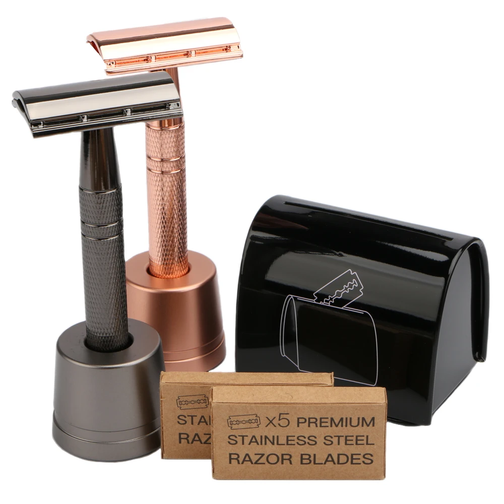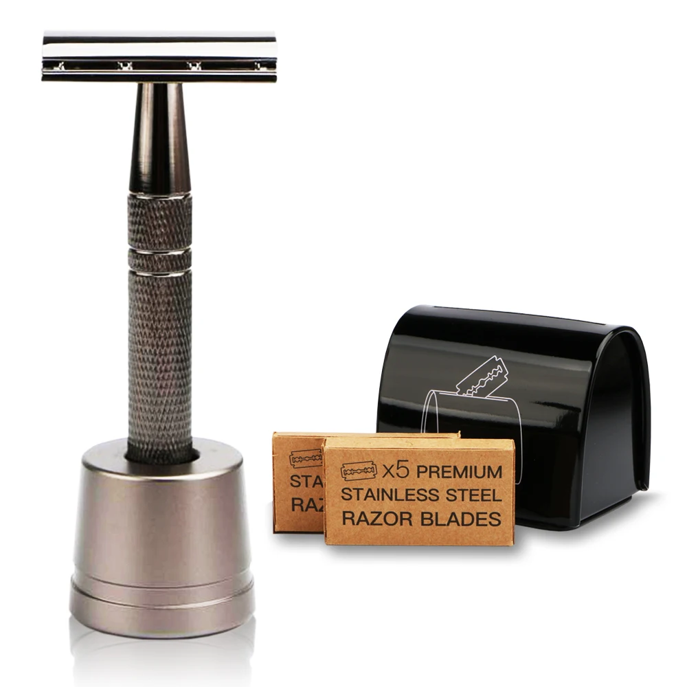 HAWARD металлическая двухкройная безопасная бритва, 1 Бритва, 1 лезвие, чехол и 10 лезвий, многоразовая Экологичная Бритва для ванной комнаты