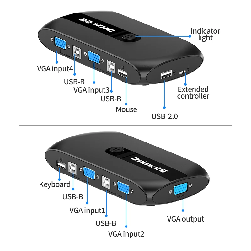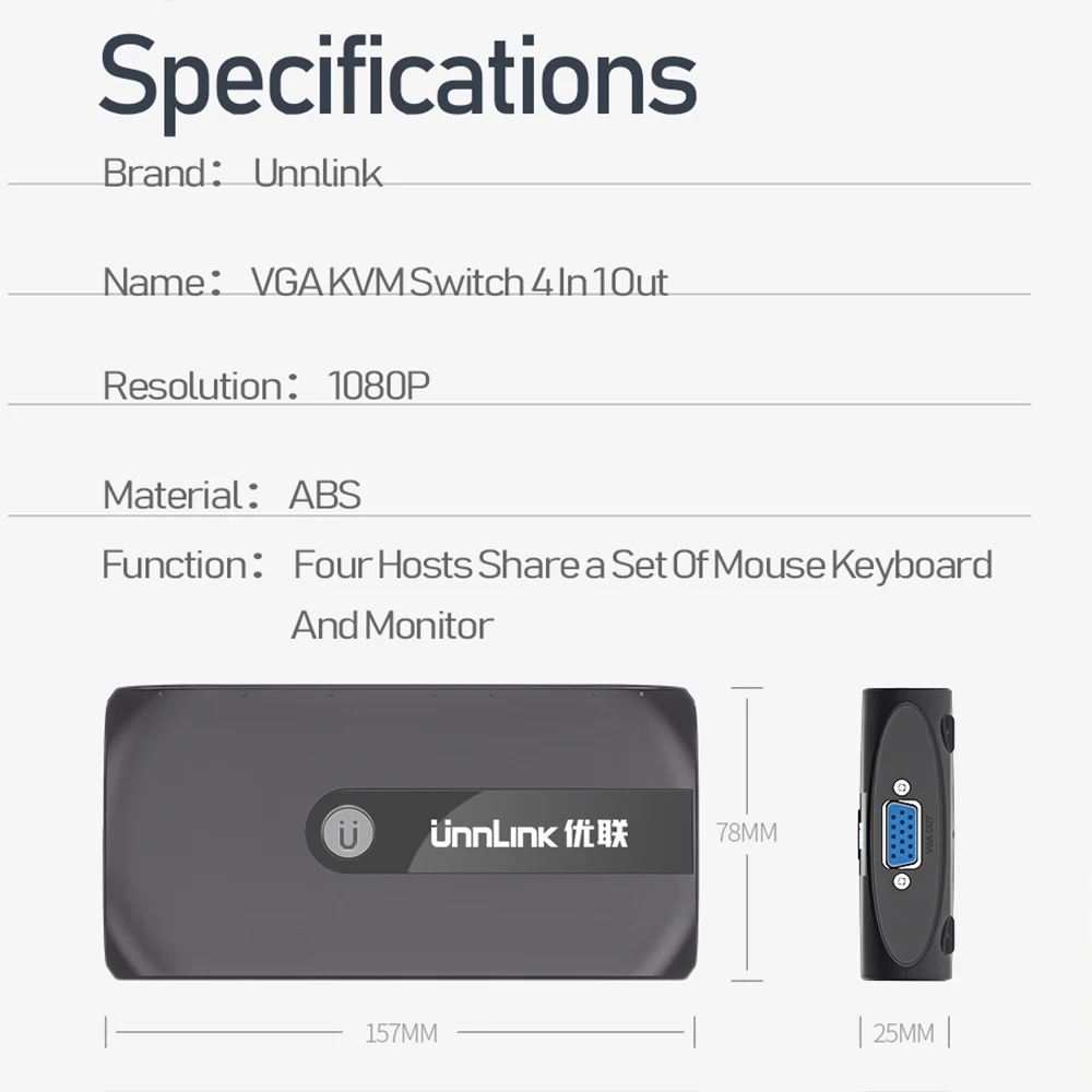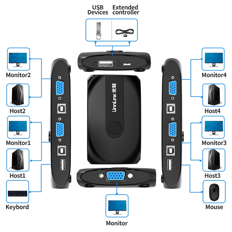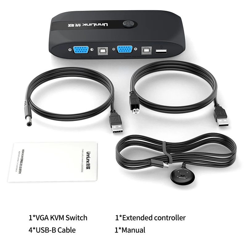 Квм-переключатель Unnlink 4X1 VGA, конвертер 1080P, 4 компьютерных лапторов, 1 монитор, 3 USB 2,0 для мыши, клавиатуры, принтера