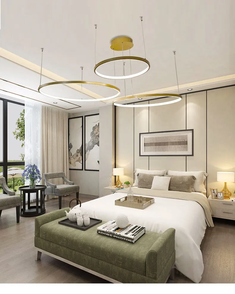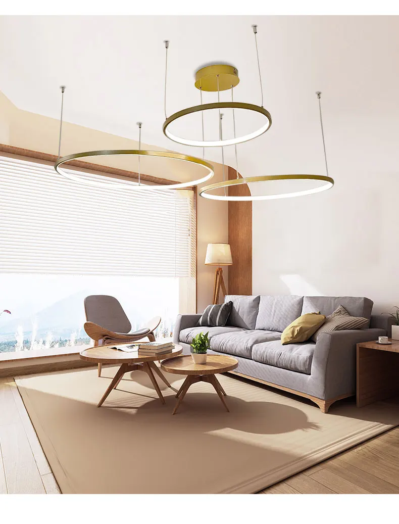 Золотые светодиодсветодиодный подвесные светильники для гостиной, столовой, кухни, круглые кольца, Декор, подвесное освещение, домашние светодиодные подвесные светильники