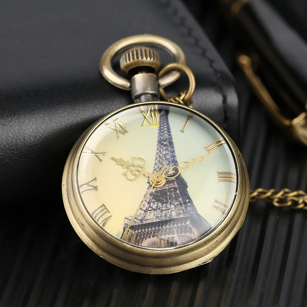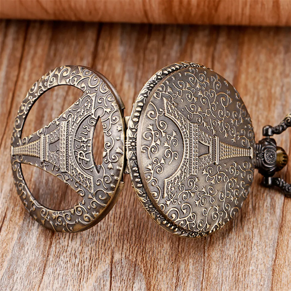 Классические карманные часы с Эйфелевой подвеской, изысканный кулон, карманные часы на цепочке для свитера, сувенирные коллекционные подарки для мужчин и женщин