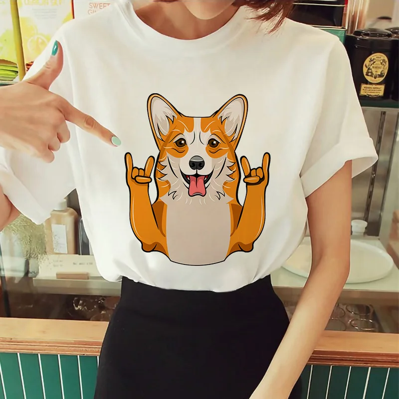 Футболка для женщин забавные Kawaii корги с принтом Собака и женски...