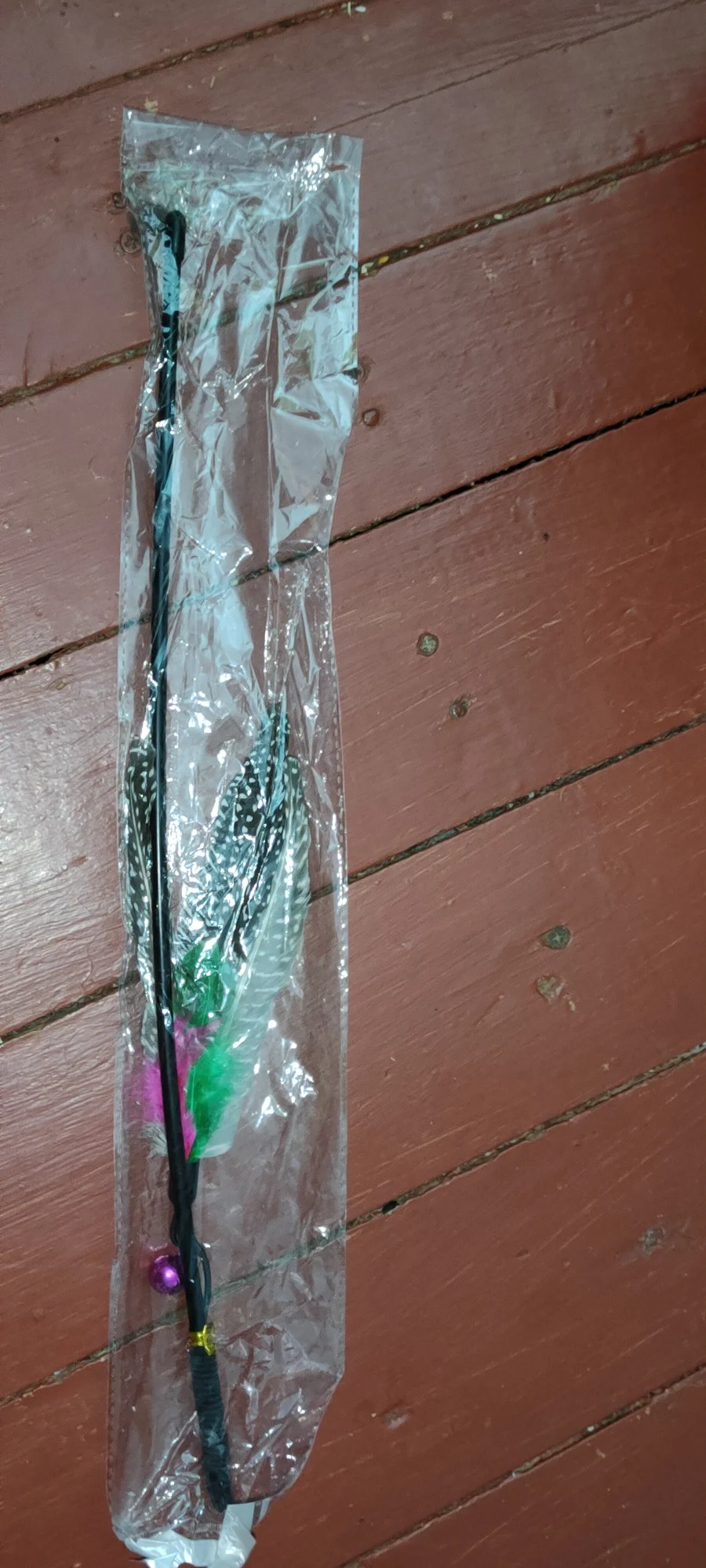 Палочка хлипкая, конечно, а перья шикарные. Кот чуть руку мне не отгрыз, когда защищал свою "добычу".