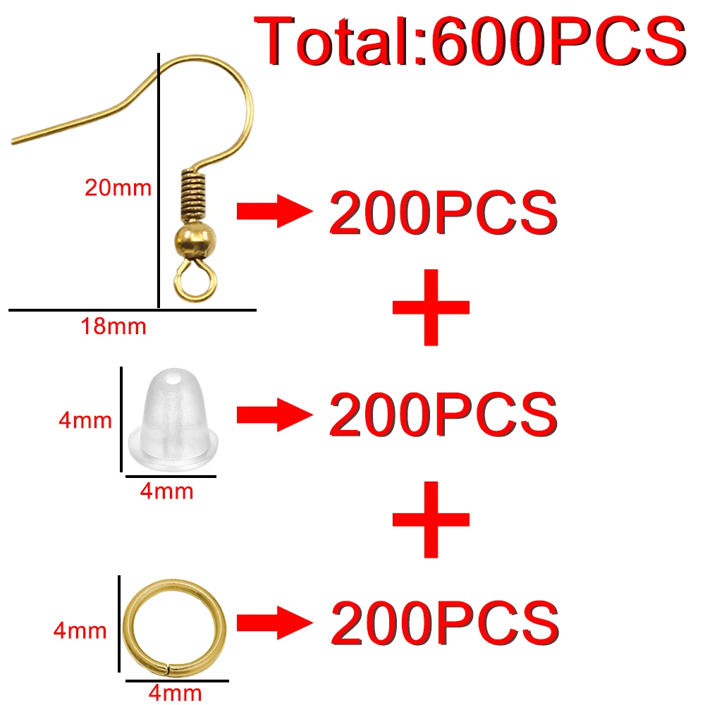 600 шт./лот, Разноцветные серьги, крючки, открытые кольца, аксессуары для изготовления ювелирных изделий, набор, поставки для DIY, серьги, ювелирные изделия