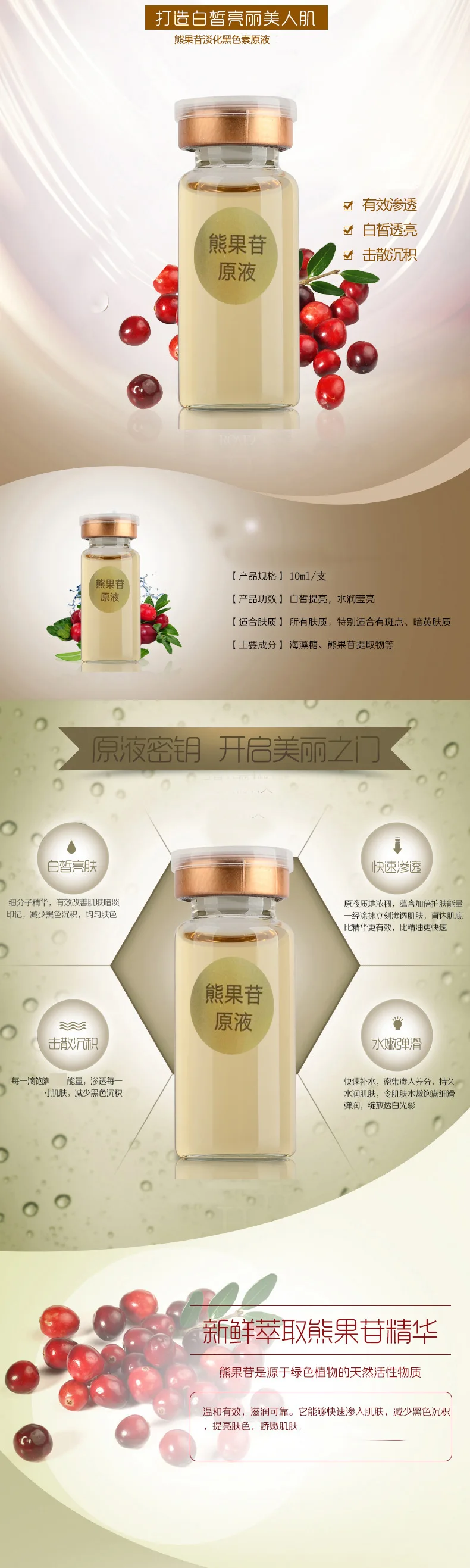 Арбутин является натуральным активным веществом, полученным из зеленых растений. Это сочетание «зеленых растений, безопасных и надежных» и «эффективной обесцвечивания» для обесцвечивания кожи. Он может быстро проникать в кожу, эффективно подавлять активность тирозиназы в коже, блокировать образование меланина и непосредственно сочетать с тирозиназой, не влияя на концентрацию распространения клеток, таким образом, ускоряет разложение и выведение меланина. Он не оказывает токсичности, раздражения, сенсации и других побочных эффектов на меланоциты. Также имеет бактерицидные и противовоспалительные эффекты. Это самый популярный Безопасный и эффективный отбеливающий материал.