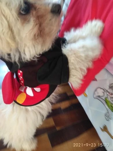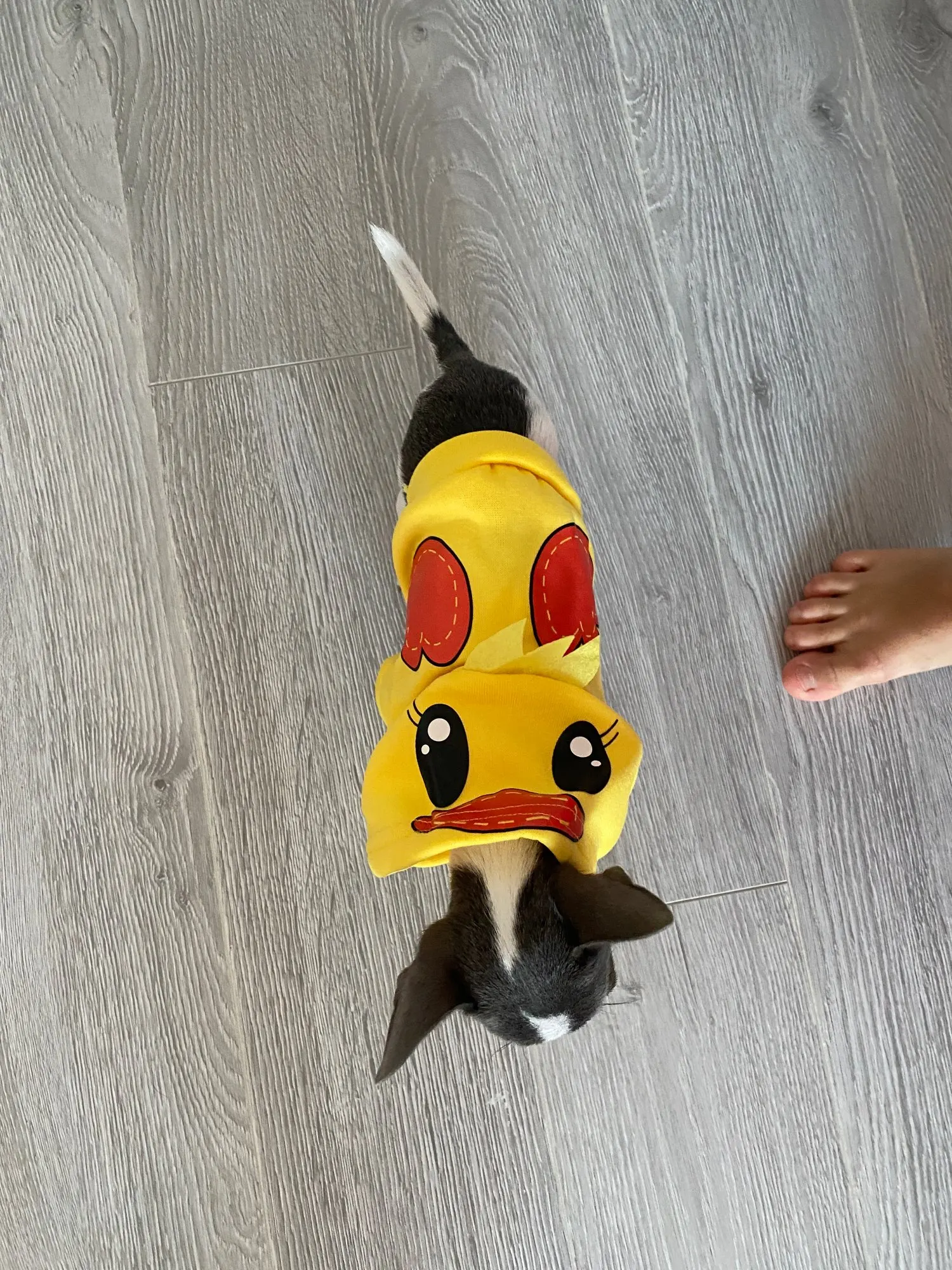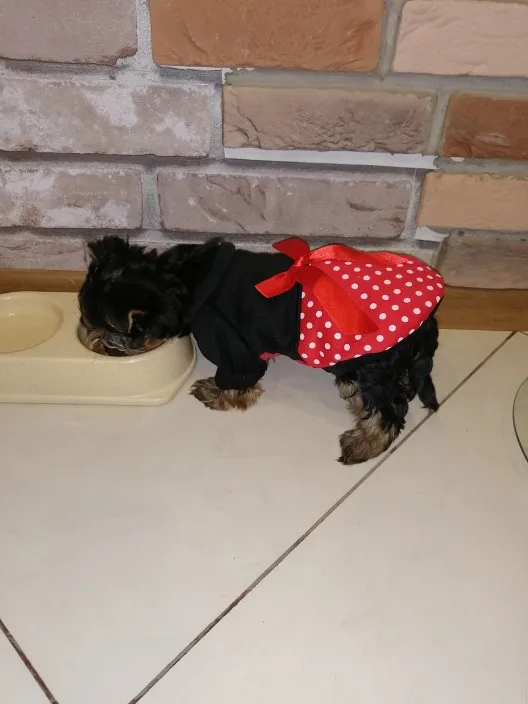 Классный свитшот, но, к сожалению, размер S подходит для маленьких пород собак чихуахуа весом 2 кг. Наша Sunia носит одежду около DL 27 см.