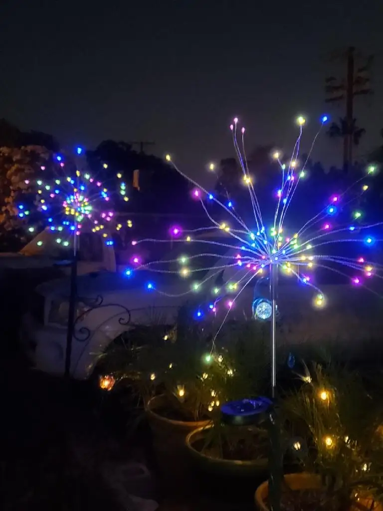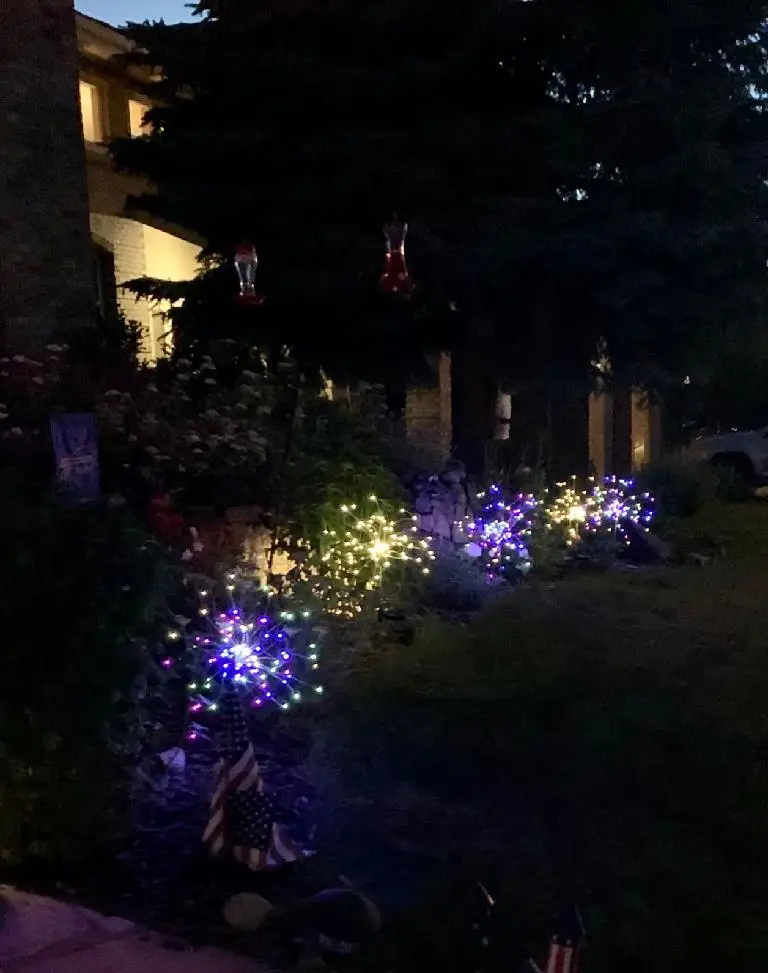 Эти огни такие красивые. Они выглядят как фейерверки. Это мои любимые огни на моем дворе