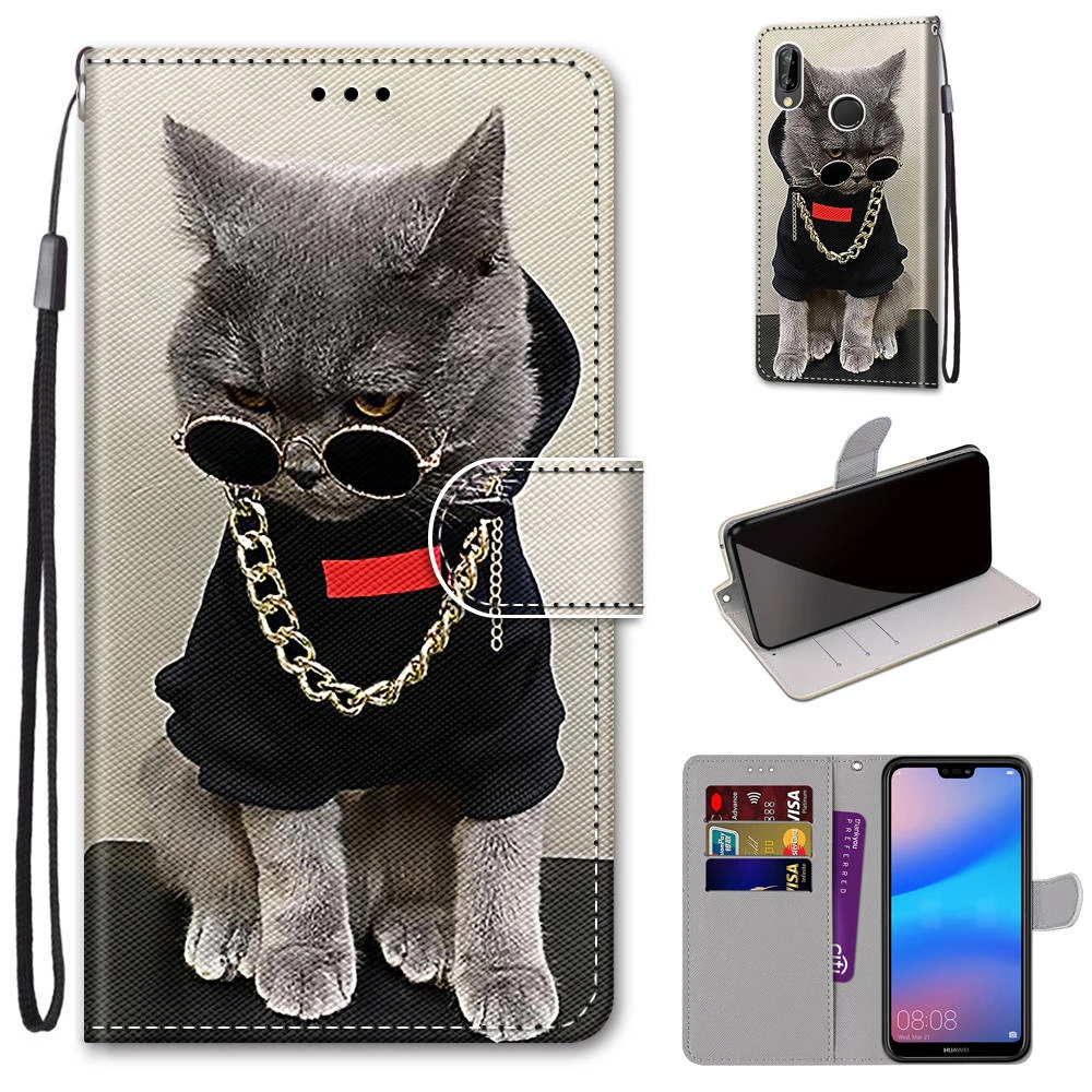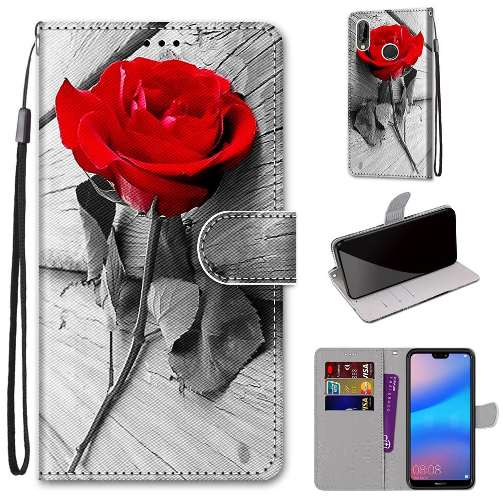 Раскрашенный кожаный флип-чехол для телефона Huawei P10 P20 P30 P40...