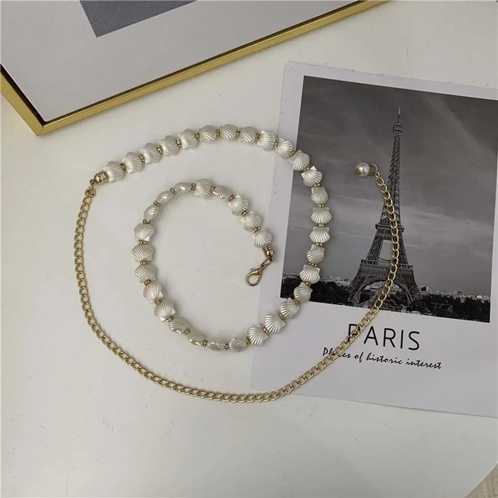 Ремень женский, тонкий, летний, декоративный, поясная цепочка с жемчугом
