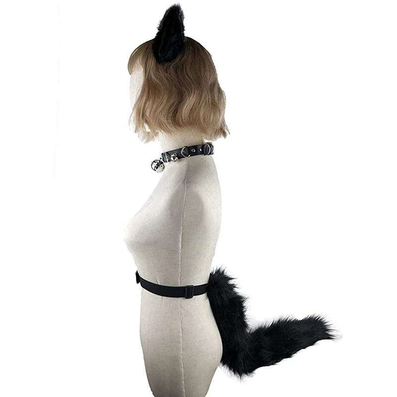 Ошейник женский из искусственной кожи, с плюшевыми ушками и хвостом