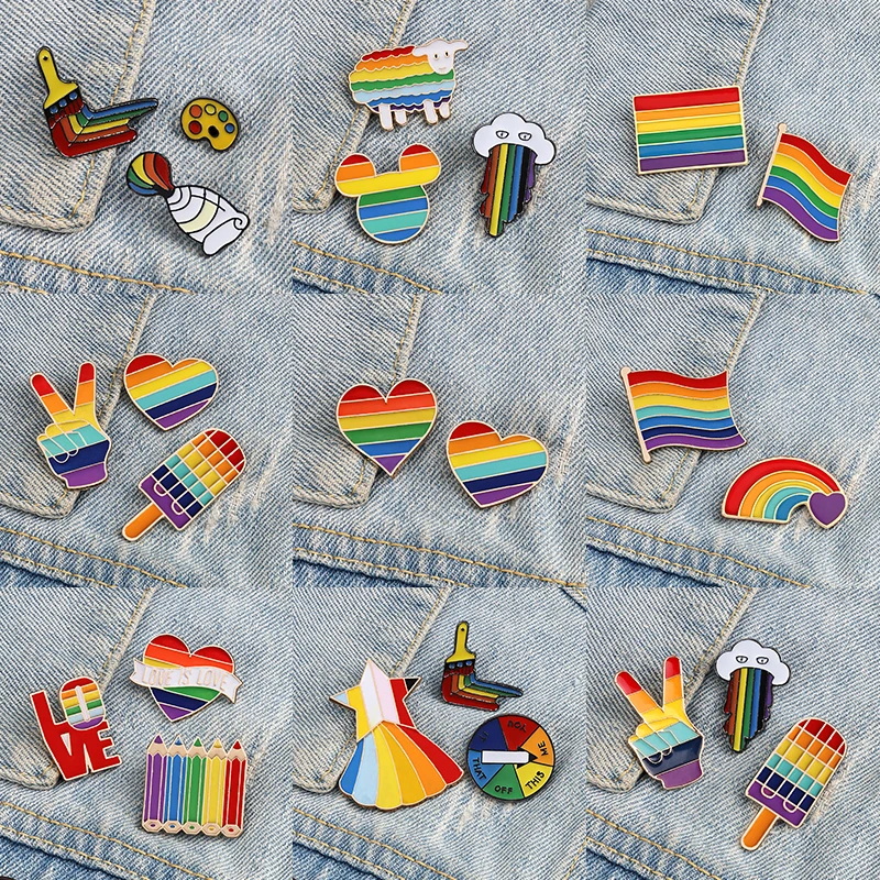 2-3 шт.компл. ЛГБТ гордость гей брошь Радужный Флаг Сердце Эмаль заколка на заказ заколки для лацканов джинсовые бриллиантовые ювелирные изделия подарок для друзей художника