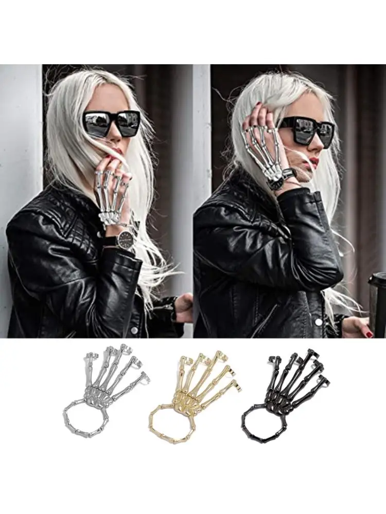 Европейские американские ювелирные изделия, искусственный череп, ручная кость, дикий Кольцо на пять пальцев, браслет, Регулируемая одна цепочка